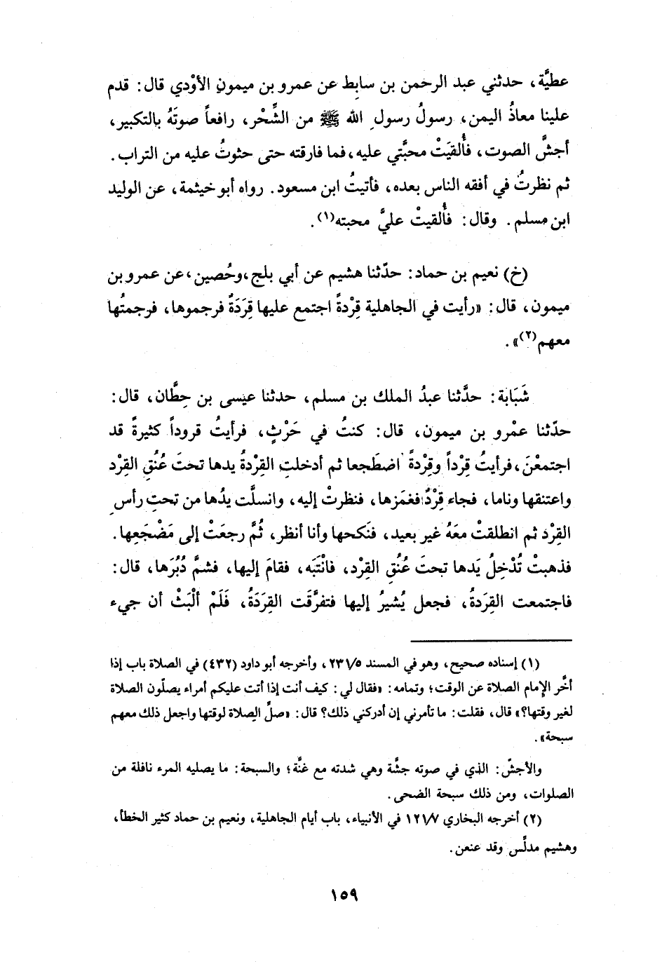 (خَ) نُعَيْمُ بنُ حَمَّادٍ: حَدَّثَنَا هُشَيْمٌ، عَنْ أَبِي بَلْجٍ، وَحُصَيْنٍ، عَنْ عَمْرِو بنِ مَيْمُوْنٍ، قَالَ:
