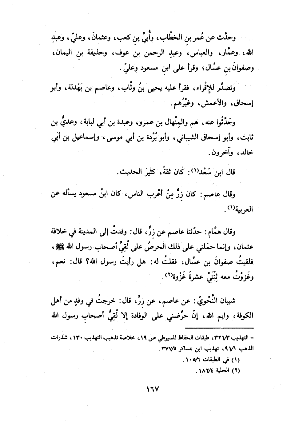 وَقَالَ عَاصِمٌ: كَانَ زِرٌّ مِنْ أَعْرَبِ النَّاسِ، كَانَ ابْنُ مَسْعُوْدٍ يَسْأَلُهُ عَنِ العَرَبِيَّةِ (1) .