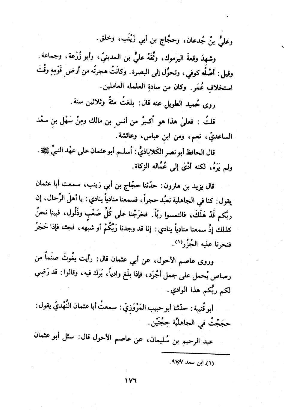قَالَ الحَافِظُ أَبُو نَصْرٍ الكَلاَبَاذِيُّ: أَسْلَمَ أَبُو عُثْمَانَ عَلَى عَهْدِ النَّبِيِّ -صَلَّى اللَّهُ عَلَيْهِ وَسَلَّمَ- وَلَمْ يَرَهُ، وَلَكِنَّهُ أَدَّى إِلَى عُمَّالِهِ الزَّكَاةَ.