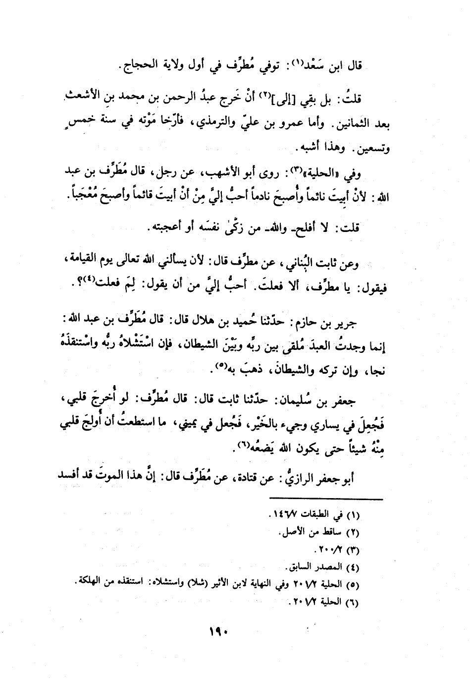 وَفِي (الحِلْيَةِ (3)) : رَوَى أَبُو الأَشْهَبِ، عَنْ رَجُلٍ، قَالَ مُطَرِّفُ بنُ عَبْدِ اللهِ: