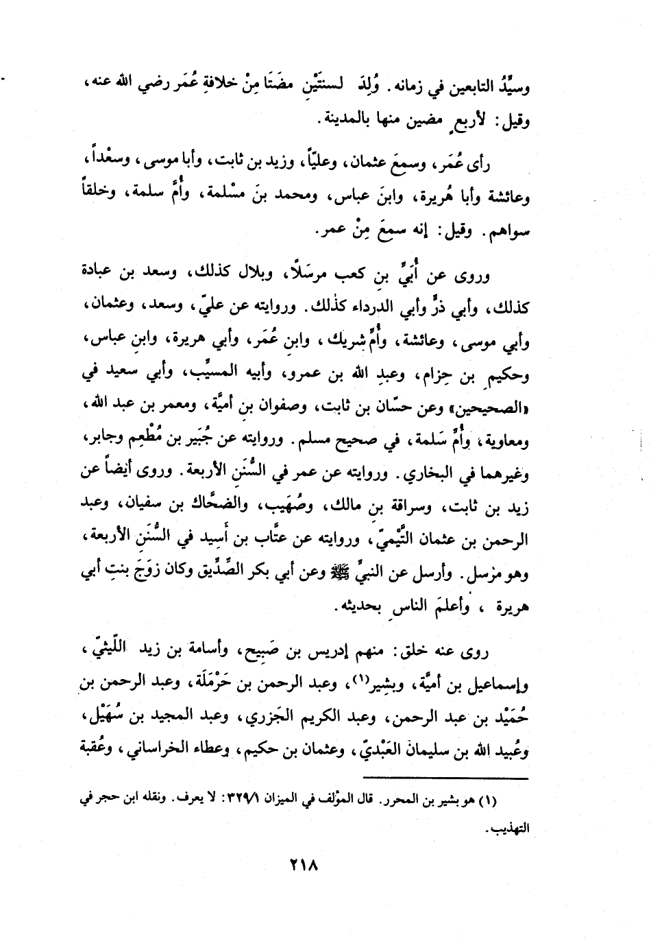 وَسَيِّدُ التَّابِعِيْنَ فِي زَمَانِهِ.