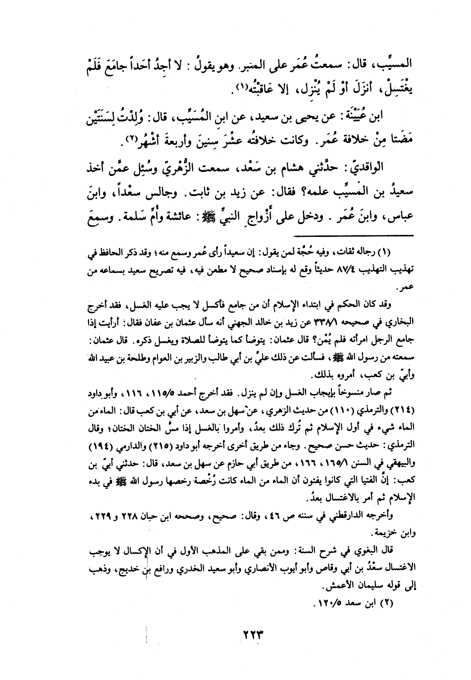 (1) رجاله ثقات، وفيه حجة لمن يقول: إن سعيدا رأى عمر وسمع منه، وقد ذكر الحافظ في تهذيب التهذيب 4 / 87 حديثا وقع له بإسناد صحيح لا مطعن فيه، فيه تصريح سعيد بسماعه من