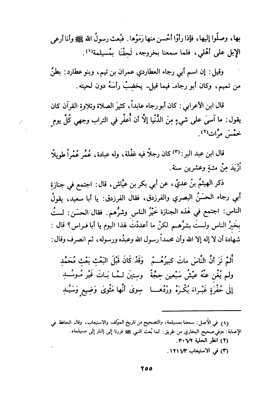 (1) في الأصل: سمعنا بمسيلمة، والتصحيح من تاريخ المؤلف والاستيعاب، وقال الحافظ في الإصابة: " وفي صحيح البخاري من طريق: لما بعث النبي صلى الله عليه وسلم فررنا إلى بالنار إلى مسيلمة ".