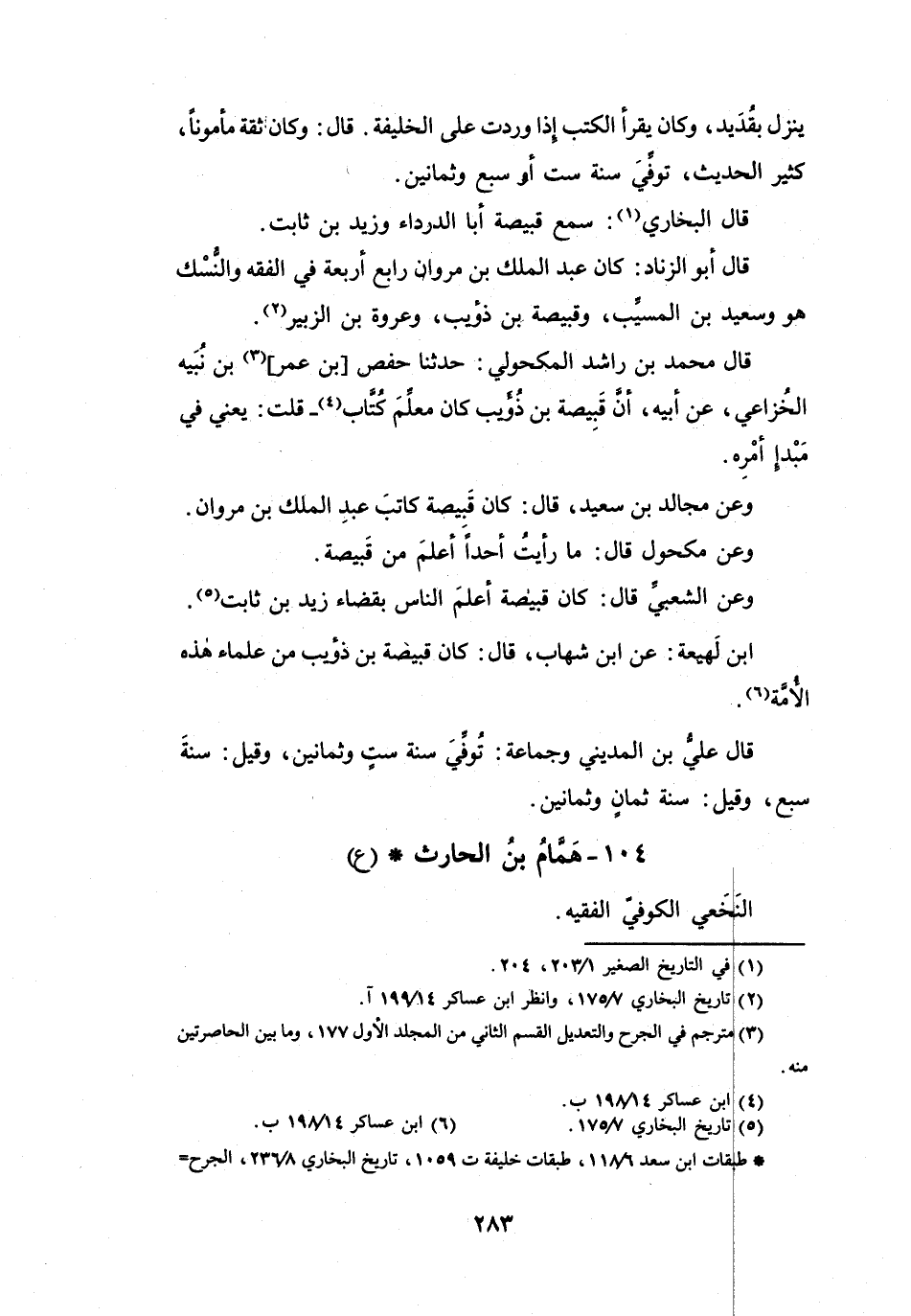 (*) طبقات ابن سعد 6 / 118، طبقات خليفة ت 1059، تاريخ البخاري 8 / 236، الجرح =