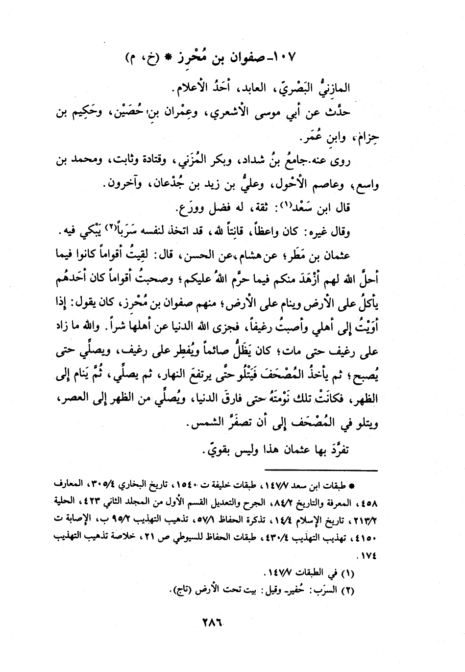107 - صَفْوَانُ بنُ مُحْرِزٍ المَازِنِيُّ البَصْرِيُّ * (خَ، م)