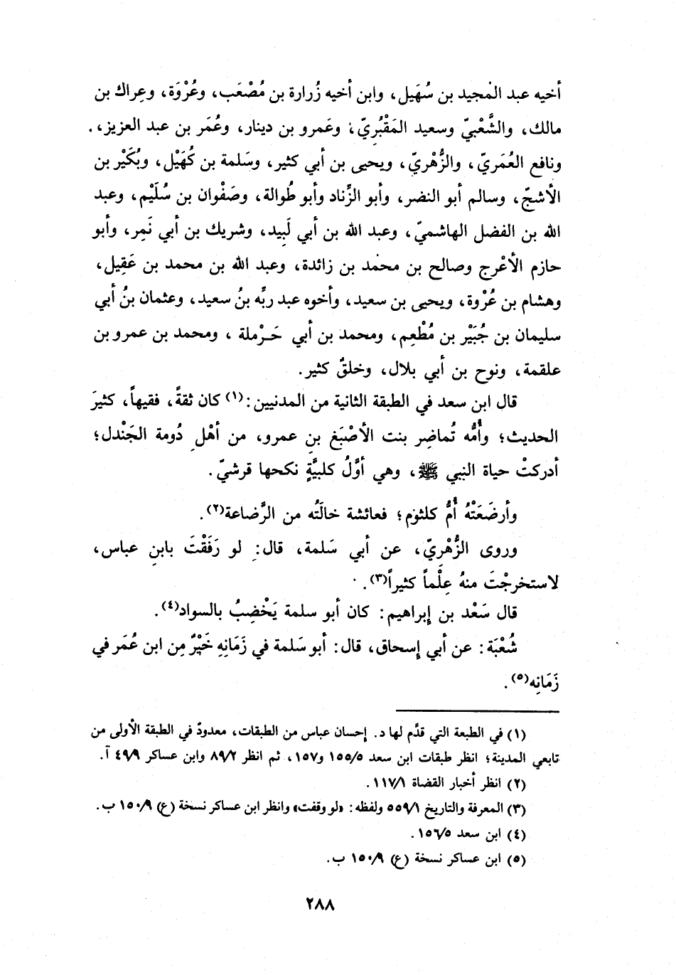إحسان عباس من الطبقات، معدود في الطبقة الأولى من تابعي المدينة، انظر طبقات ابن سعد 5 / 155 و157، ثم انظر 2 / 89 وابن عساكر 9 / 49 آ.