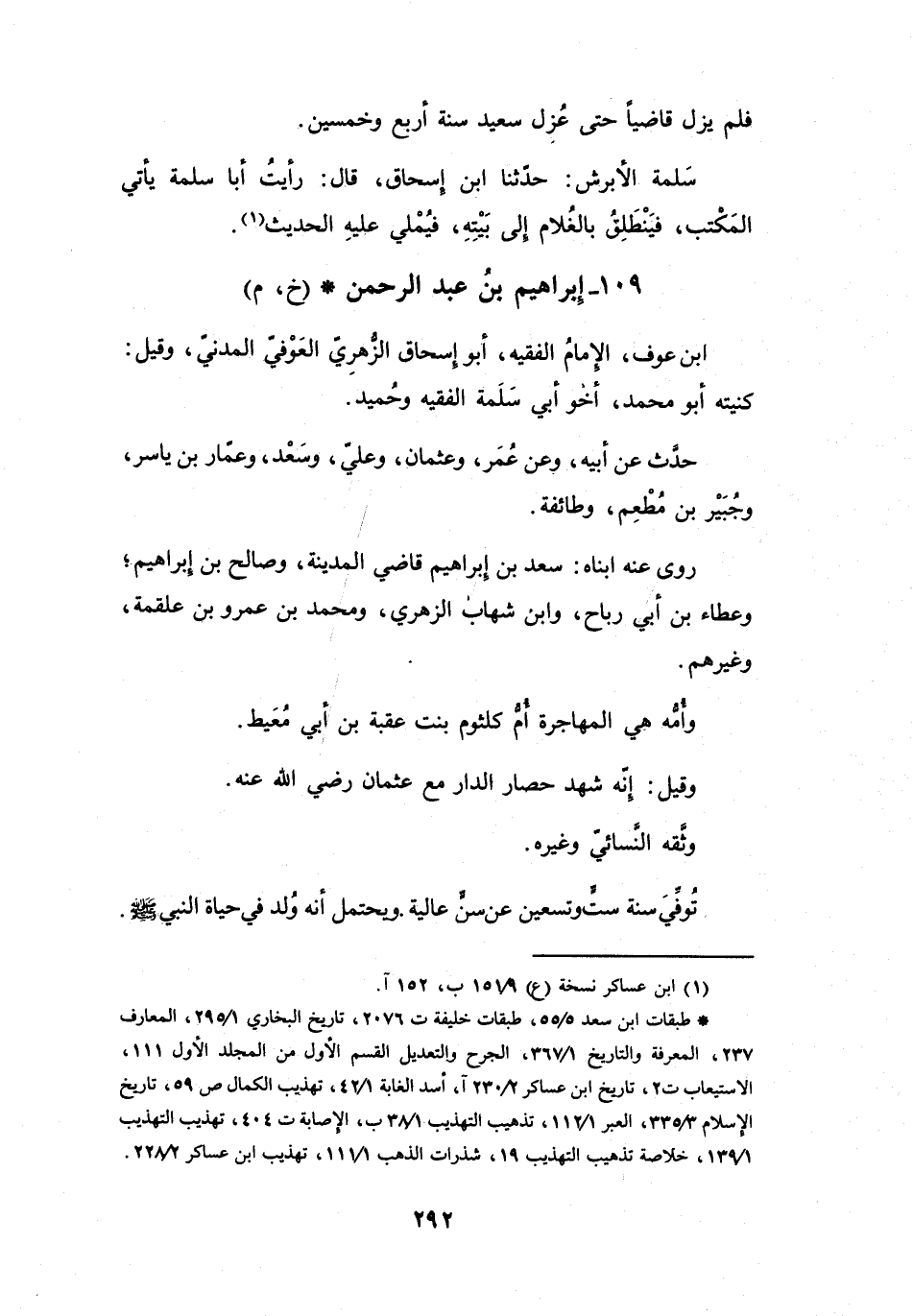 109 - إِبْرَاهِيْمُ بنُ عَبْدِ الرَّحْمَنِ بنِ عَوْفٍ الزُّهْرِيُّ * (خَ، م)