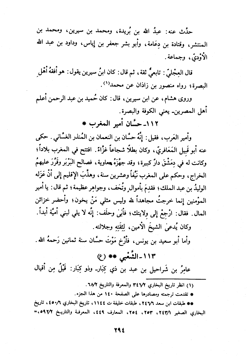 113 - الشَّعْبِيُّ عَامِرُ بنُ شَرَاحِيْلَ بن عَبْدِ بنِ ذِي كِبَارٍ **