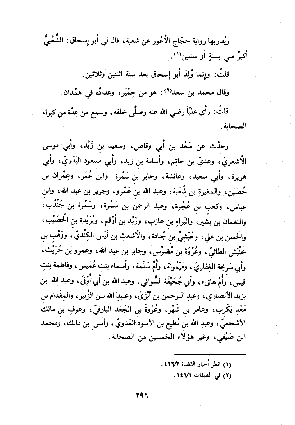 قَالَ لِي أَبُو إِسْحَاقَ: الشَّعْبِيُّ أَكْبَرُ مِنِّي بِسَنَةٍ أَوْ سَنَتَيْنِ (1) .