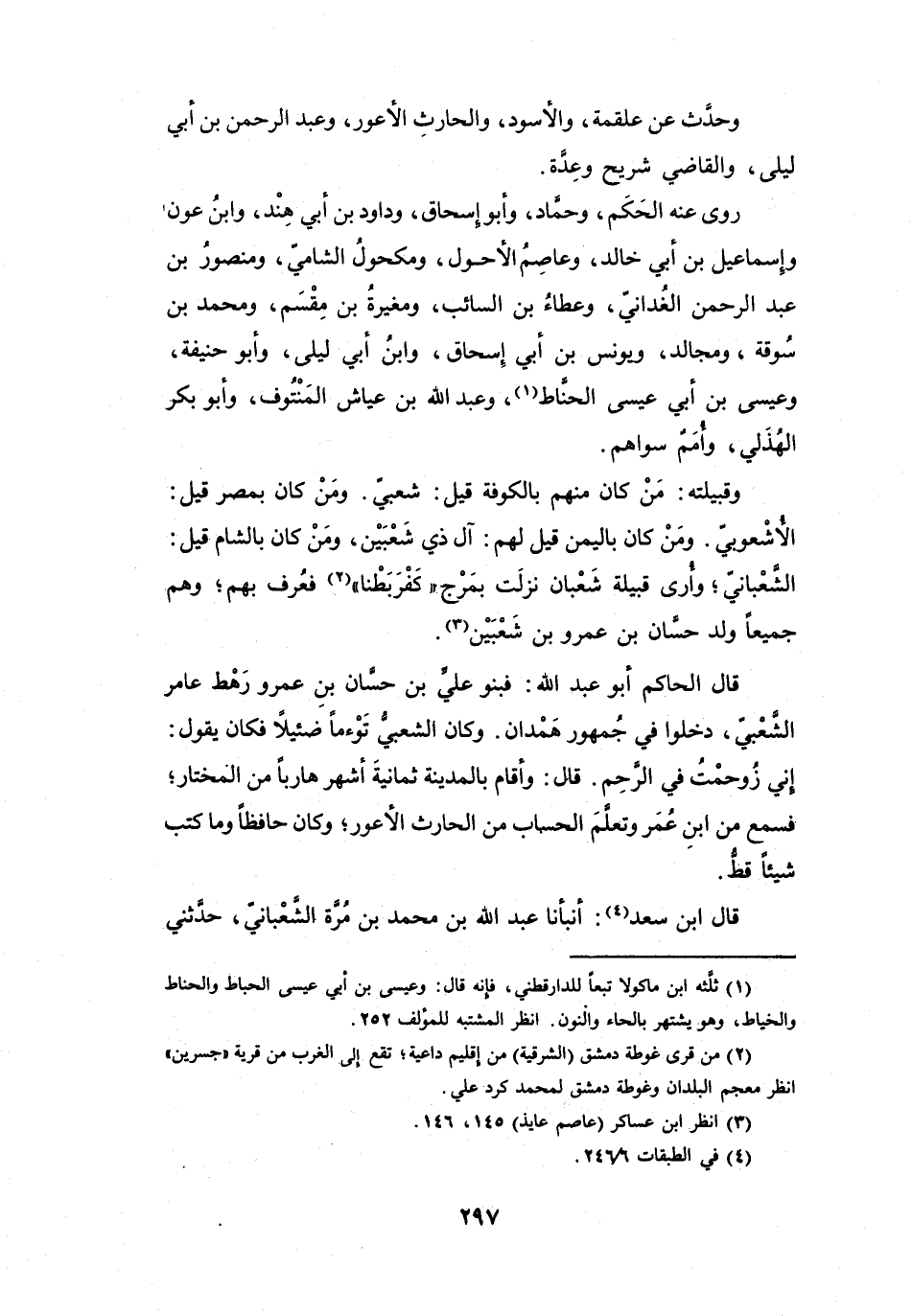 قَالَ الحَاكِمُ أَبُو عَبْدِ اللهِ: فَبَنُو عَلِيِّ بنِ حَسَّانِ بنِ عَمْرٍو رَهْطُ عَامِرٍ الشَّعْبِيِّ، دَخَلُوا فِي جُمْهُوْرِ هَمْدَانَ، وَكَانَ الشَّعْبِيُّ تَوْءماً ضَئِيْلاً، فَكَانَ يَقُوْلُ: إِنِّي زُوْحِمْتُ فِي الرَّحِمِ.