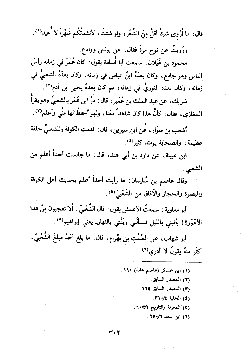وَقَالَ عَاصِمُ بنُ سُلَيْمَانَ: مَا رَأَيْتُ أَحَداً أَعْلَمَ بِحَدِيْثِ أَهْلِ الكُوْفَةِ وَالبَصْرَةِ وَالحِجَازِ وَالآفَاقِ مِنَ الشَّعْبِيِّ (4) .