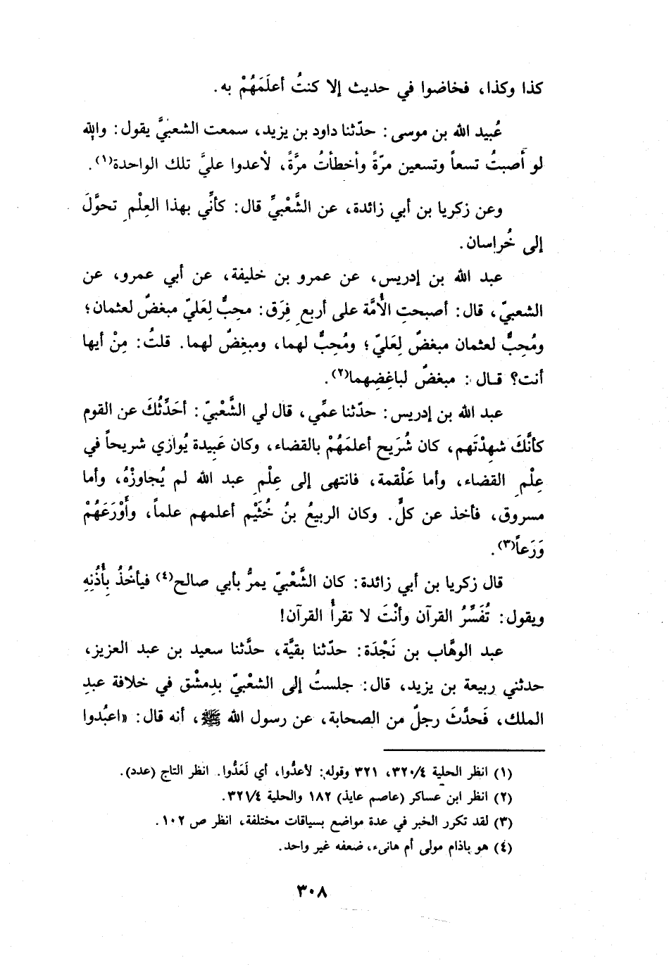 وَعَنْ زَكَرِيَّا بنِ أَبِي زَائِدَةَ، عَنِ الشَّعْبِيِّ، قَالَ: كَأَنِّي بِهَذَا العِلْمِ تَحَوَّلَ إِلَى خُرَاسَانَ.