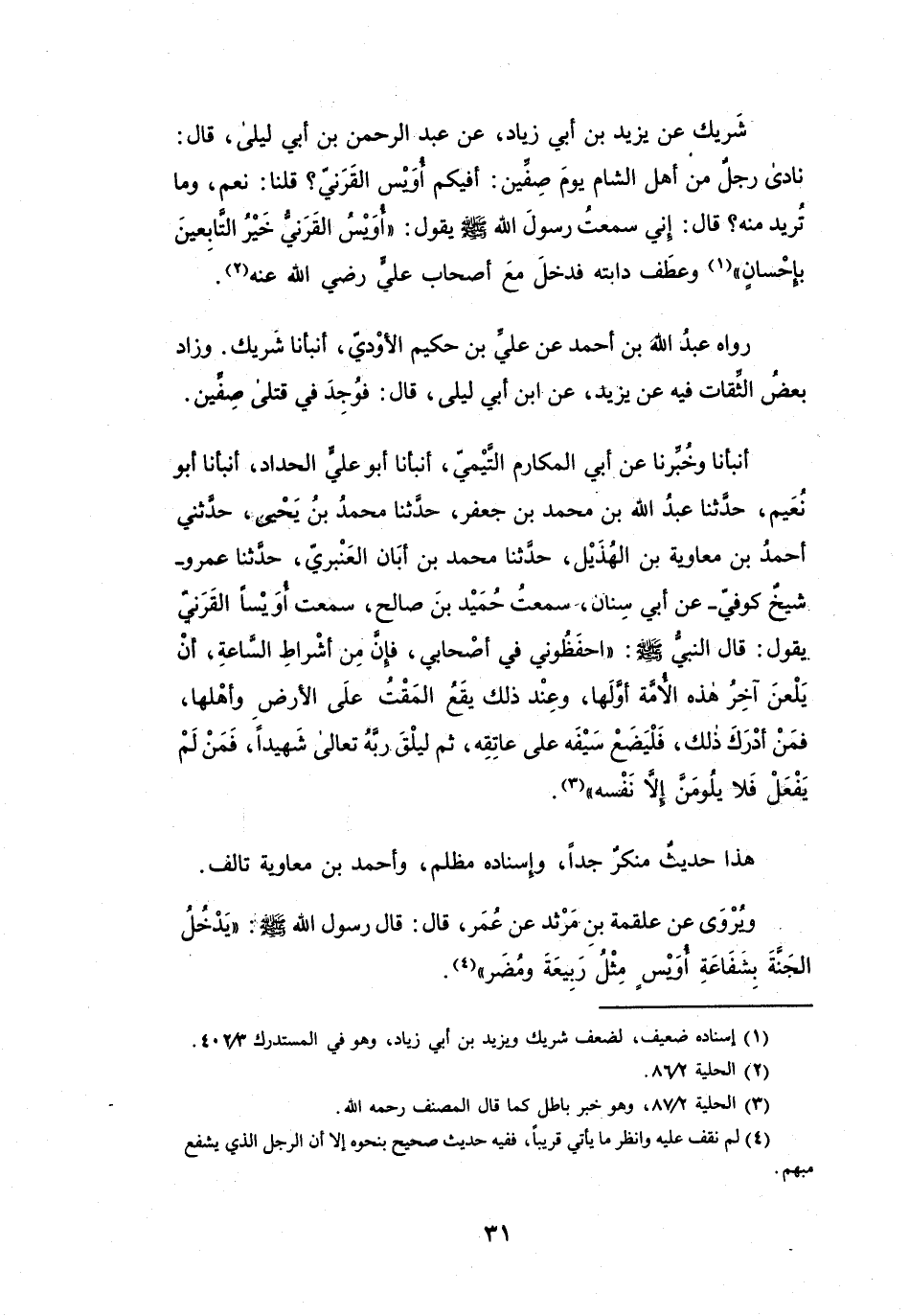 نَادَى رَجُلٌ مِنْ أَهْلِ الشَّامِ يَوْمَ صِفِّيْنَ: أَفِيْكُم أُوَيْسٌ القَرَنِيُّ؟