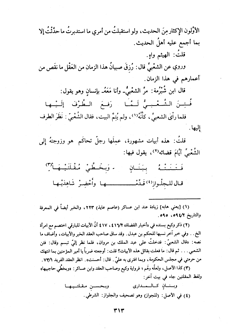 قُلْتُ: هَذِهِ أَبْيَاتٌ مَشْهُوْرَةٌ، عَمِلَهَا رَجُلٌ تَحَاكَمَ هُوَ وَزَوْجَتُهُ إِلَى الشَّعْبِيِّ أَيَّامَ قَضَائِهِ (2) يَقُوْلُ فِيْهَا:
