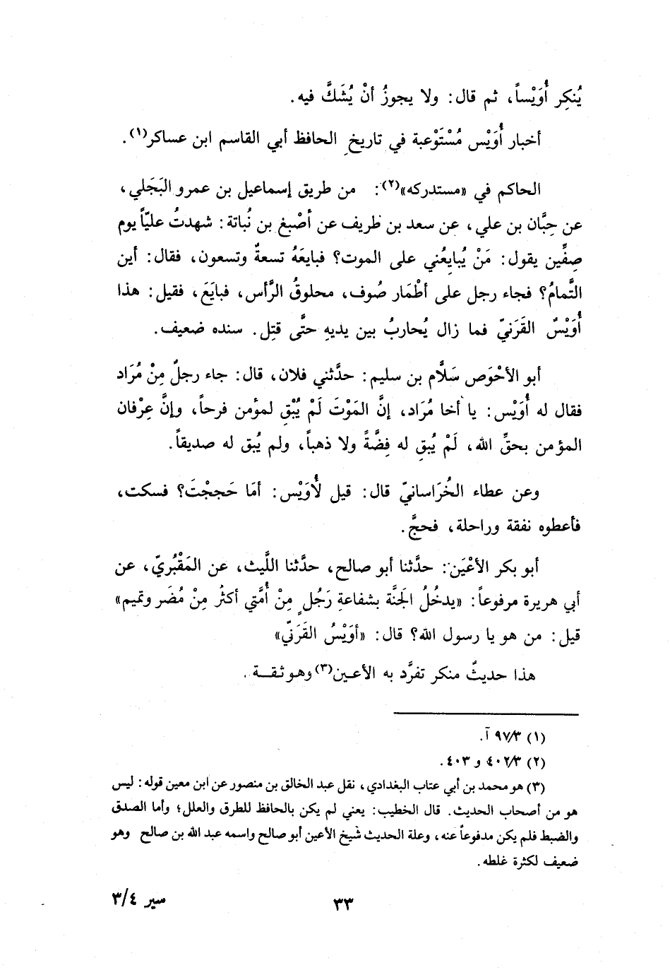 أَخْبَارُ أُوَيْسٍ مُسْتَوْعَبَةٌ فِي (تَارِيْخِ الحَافِظِ أَبِي القَاسِمِ ابْنِ عَسَاكِرَ (1)) .