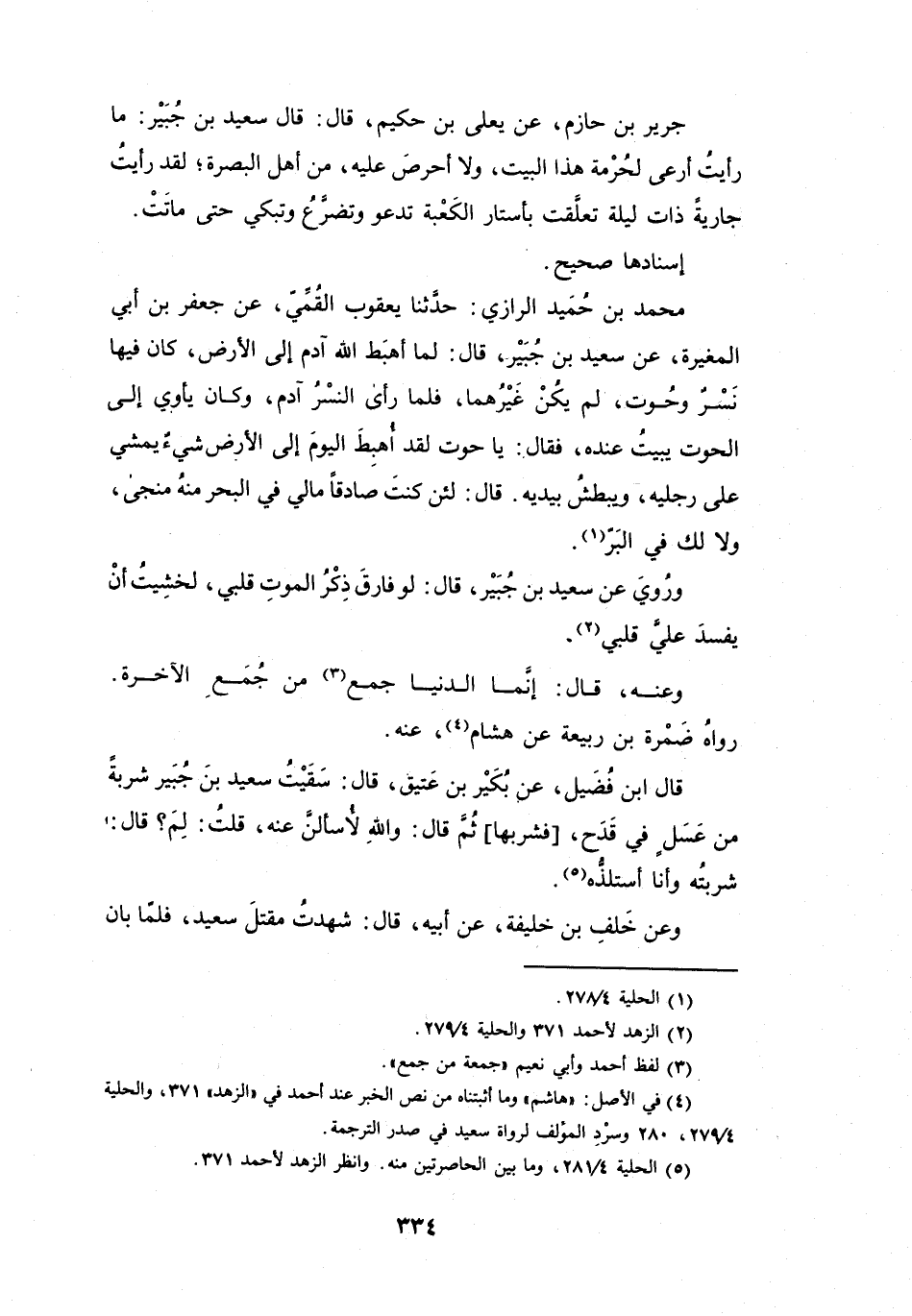 (4) في الأصل: " هاشم " وما أثبتناه من نص الخبر عند أحمد في " الزهد " 371، والحلية 4 / 279، 280 وسرد المؤلف لرواة سعيد في صدر الترجمة.