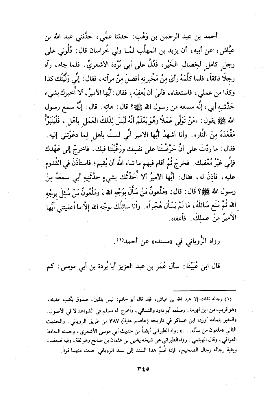 رَوَاهُ: الرُّوْيَانِيُّ فِي (مُسْنَدِهِ) ، عَنْ أَحْمَدَ (1) .