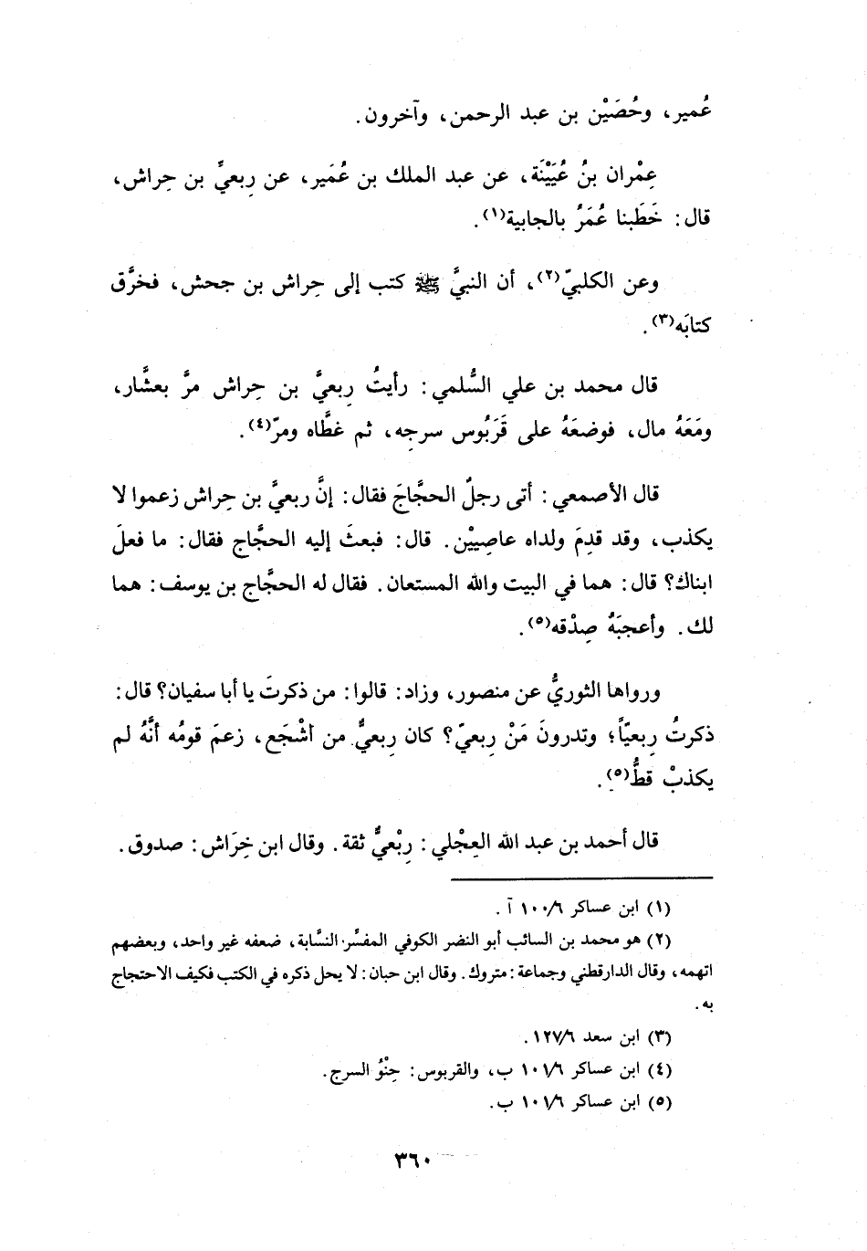 قَالَ مُحَمَّدُ بنُ عَلِيٍّ السُّلَمِيُّ: رَأَيْتُ رِبْعِيَّ بنَ حِرَاشٍ مَرَّ بِعَشَّارٍ، وَمَعَهُ مَالٌ، فَوَضَعَهُ عَلَى قَرَبُوْسِ سَرْجِهِ، ثُمَّ غَطَّاهُ، وَمَرَّ (4) .