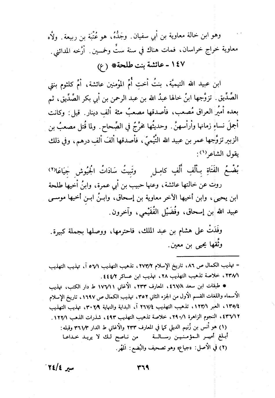 147 - عَائِشَةُ بِنْتُ طَلْحَةَ بنِ عُبَيْدِ اللهِ التَّيْمِيَّةُ * (ع)