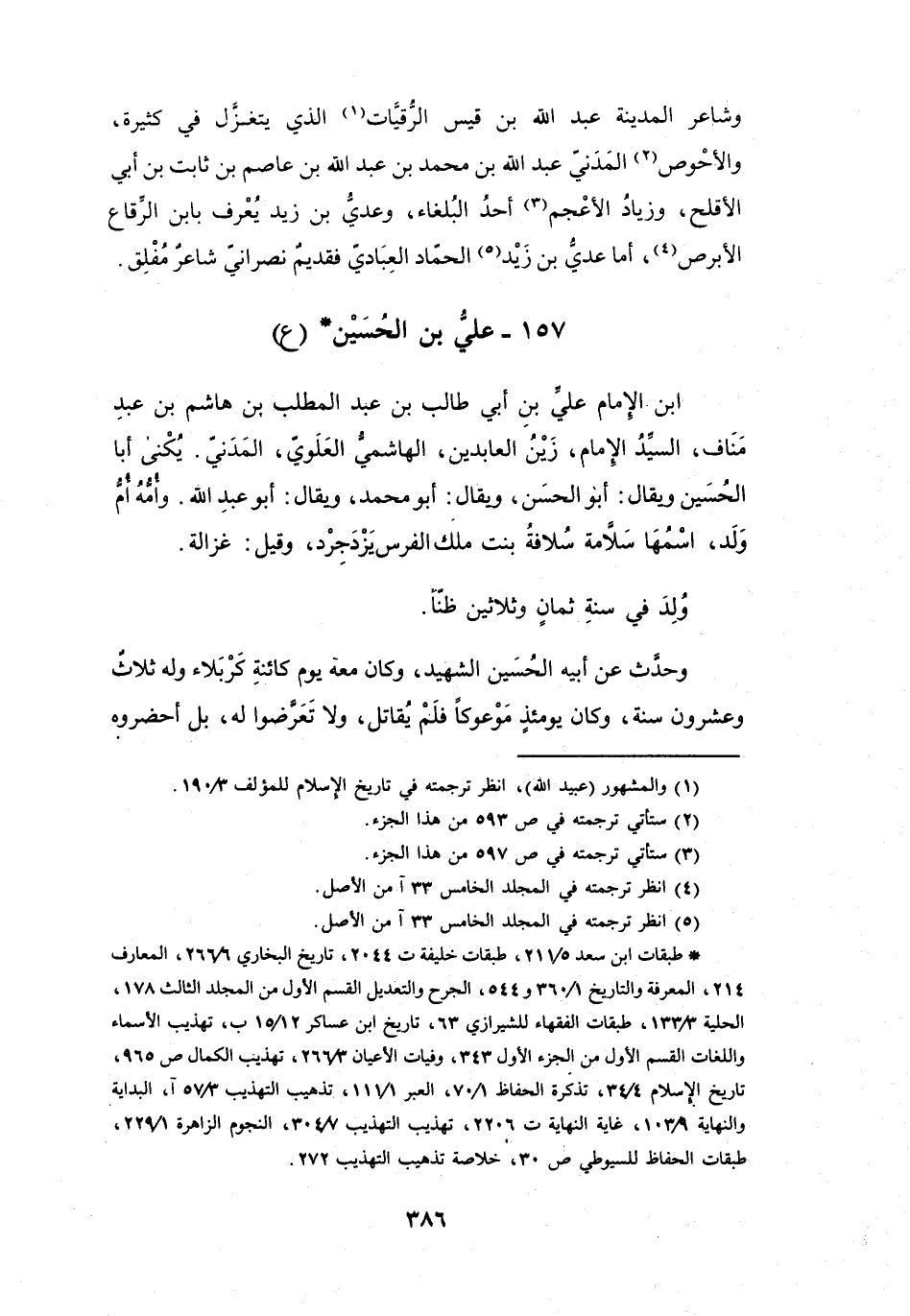 157 - عَلِيُّ بنُ الحُسَيْنِ ابْنِ الإِمَامِ عَلِيِّ بنِ أَبِي طَالِبٍ الهَاشِمِيُّ * (ع)