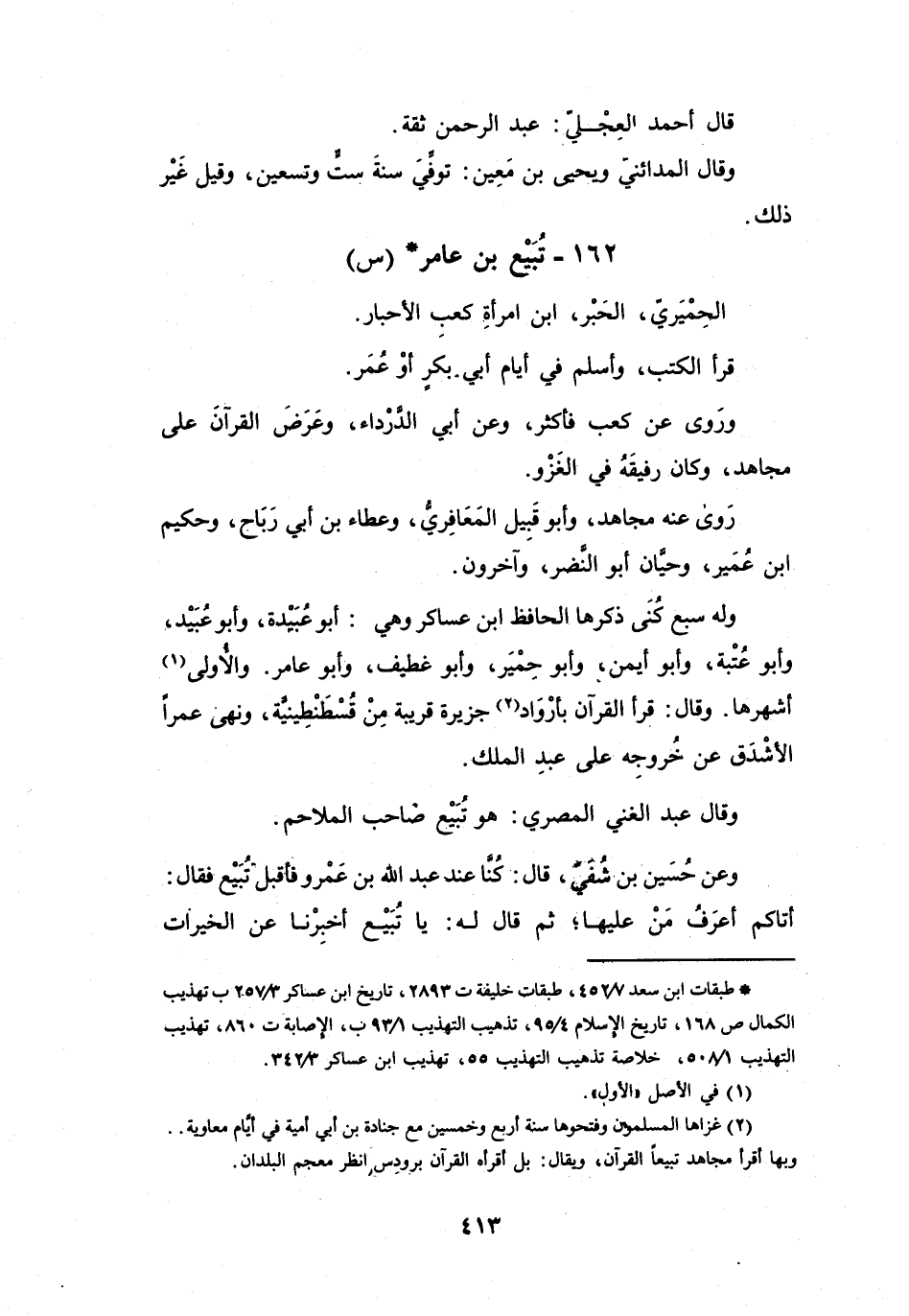 (*) طبقات ابن سعد 7 / 452، طبقات خليفة ت 2893، تاريخ ابن عساكر 3 / 257 ب تهذيب الكمال ص 168، تاريخ الإسلام 4 / 95، تذهيب التهذيب 1 / 93 ب، الإصابة ت 860، تهذيب التهذيب 1 / 508، خلاصة تذهيب التهذيب 55، تهذيب ابن عساكر 3 / 342.
