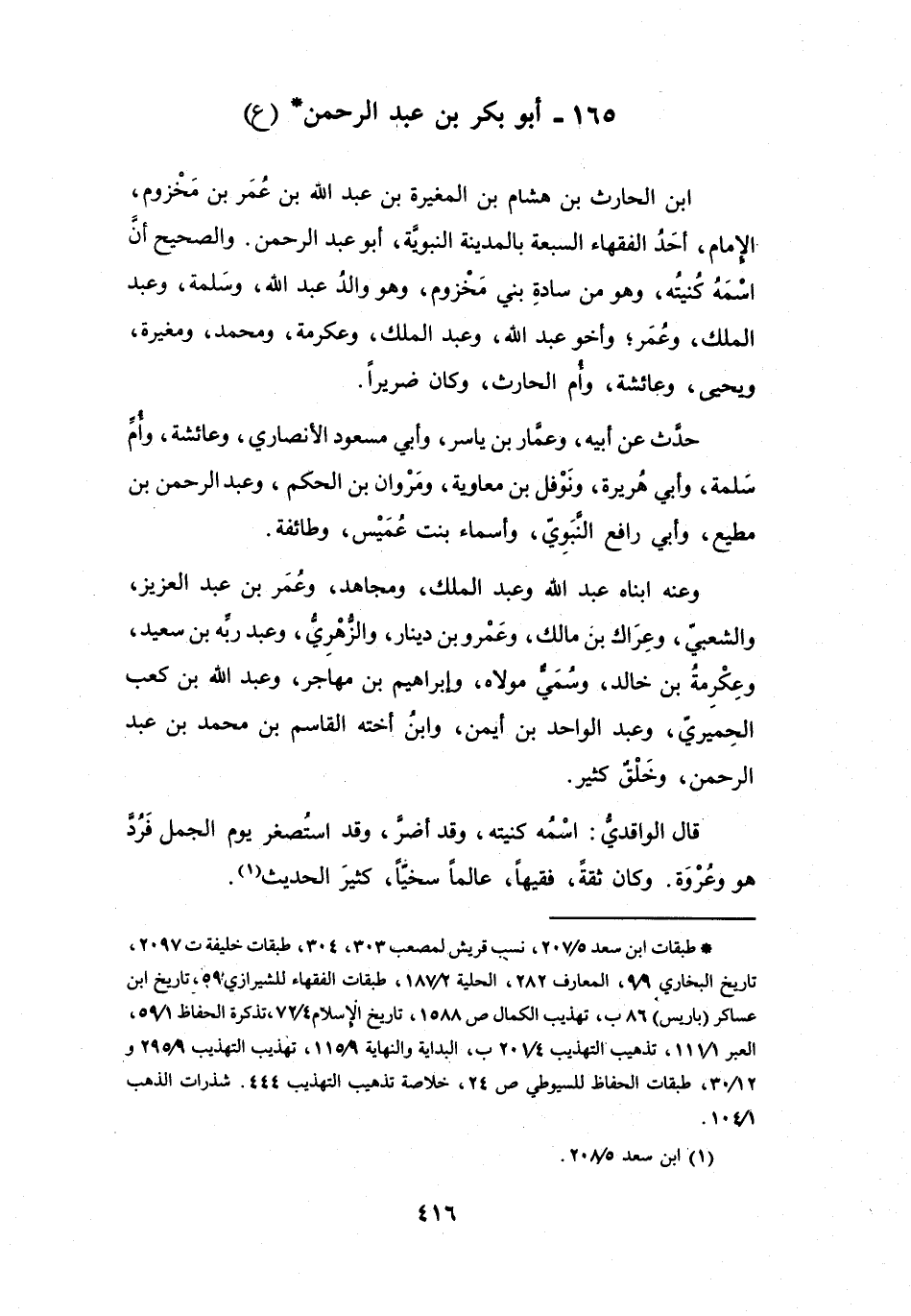 (*) طبقات ابن سعد 5 / 207، نسب قريش لمصعب 303، 304، طبقات خليفة ت 2097، تاريخ البخاري 9 / 9، المعارف 282، الحلية 2 / 187، طبقات الفقهاء للشيرازي 59، تاريخ ابن عساكر (باريس) 86 ب، تهذيب الكمال ص 1588، تاريخ الإسلام 4 / 72، تذكرة الحفاظ 1 / 59، العبر 1 / 111، تذهيب التهذيب 4 / 201 ب، البداية والنهاية 9 / 115، تهذيب التهذيب 9 / 295 و12 / 30، طبقات الحفاظ للسيوطي ص 24، خلاصة تذهيب التهذيب 444، شذرات الذهب 1 / 104.