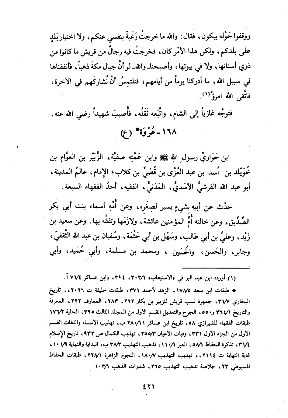 وَابْنُ عَمَّتِهِ صَفِيَّةَ: الزُّبَيْرِ بنِ العَوَّامِ بنِ خُوَيْلِدِ بنِ أَسَدِ بنِ عَبْدِ العُزَّى بنِ قُصَيِّ بنِ كِلاَبٍ، الإِمَامُ، عَالِمُ المَدِيْنَةِ، أَبُو عَبْدِ اللهِ القُرَشِيُّ، الأَسَدِيُّ، المَدَنِيُّ، الفَقِيْهُ، أَحَدُ الفُقَهَاءِ السَّبْعَةِ.