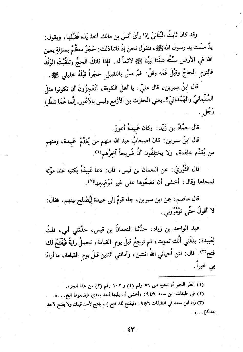 وَقَدْ كَانَ ثَابِتٌ البُنَانِيُّ إِذَا رَأَى أَنَسَ بنَ مَالِكٍ أَخَذَ يَدَهُ، فَقَبَّلَهَا، وَيَقُوْلُ: