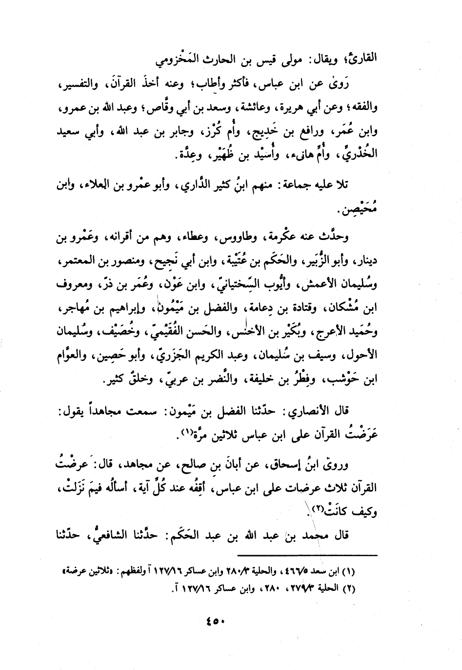 عَرَضْتُ القُرْآنَ عَلَى ابْنِ عَبَّاسٍ ثَلاَثِيْنَ مَرَّةً (1) .
