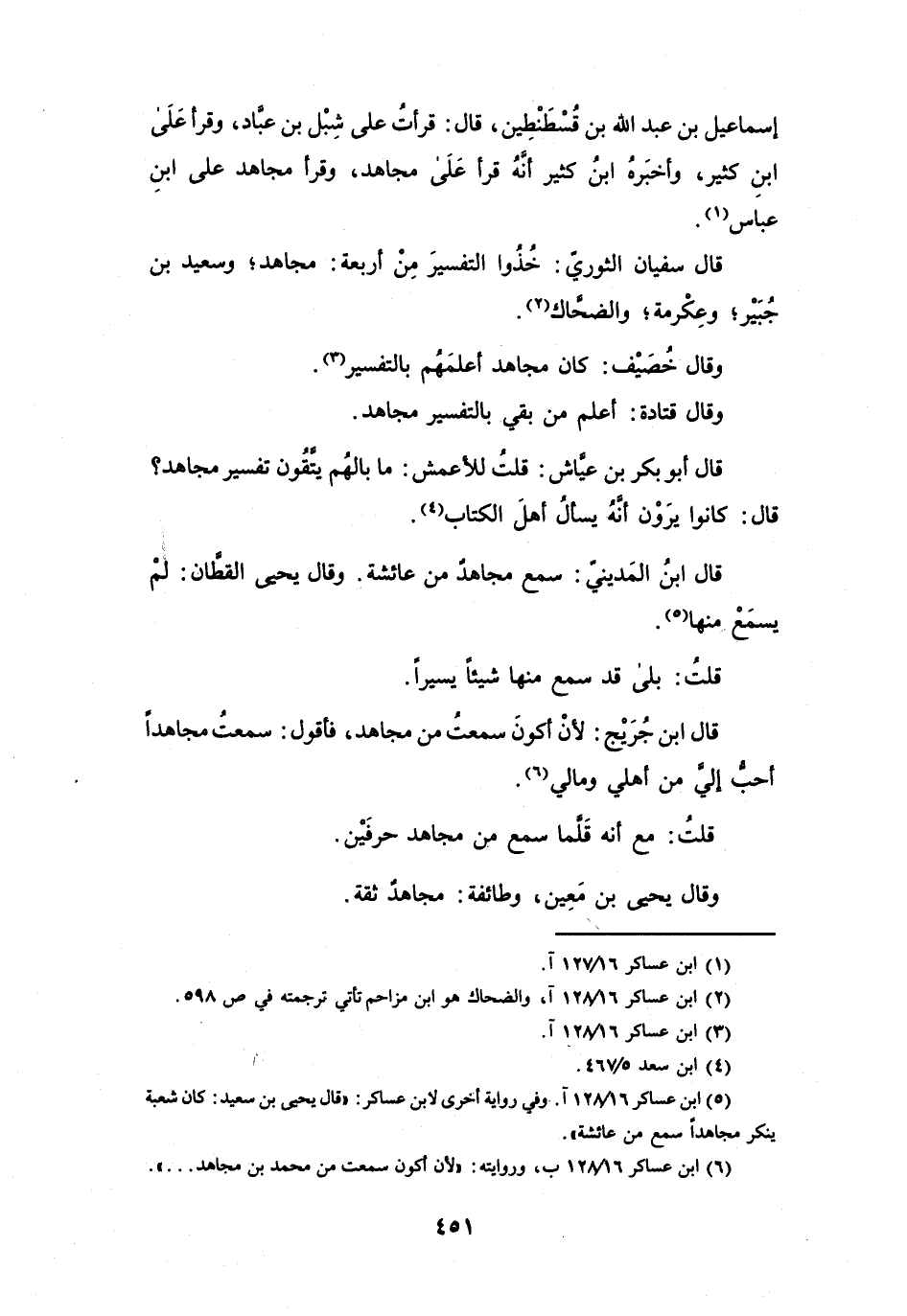 (6) ابن عساكر 16 / 128 ب، وروايته: " لان أكون سمعت من محمد بن مجاهد..".