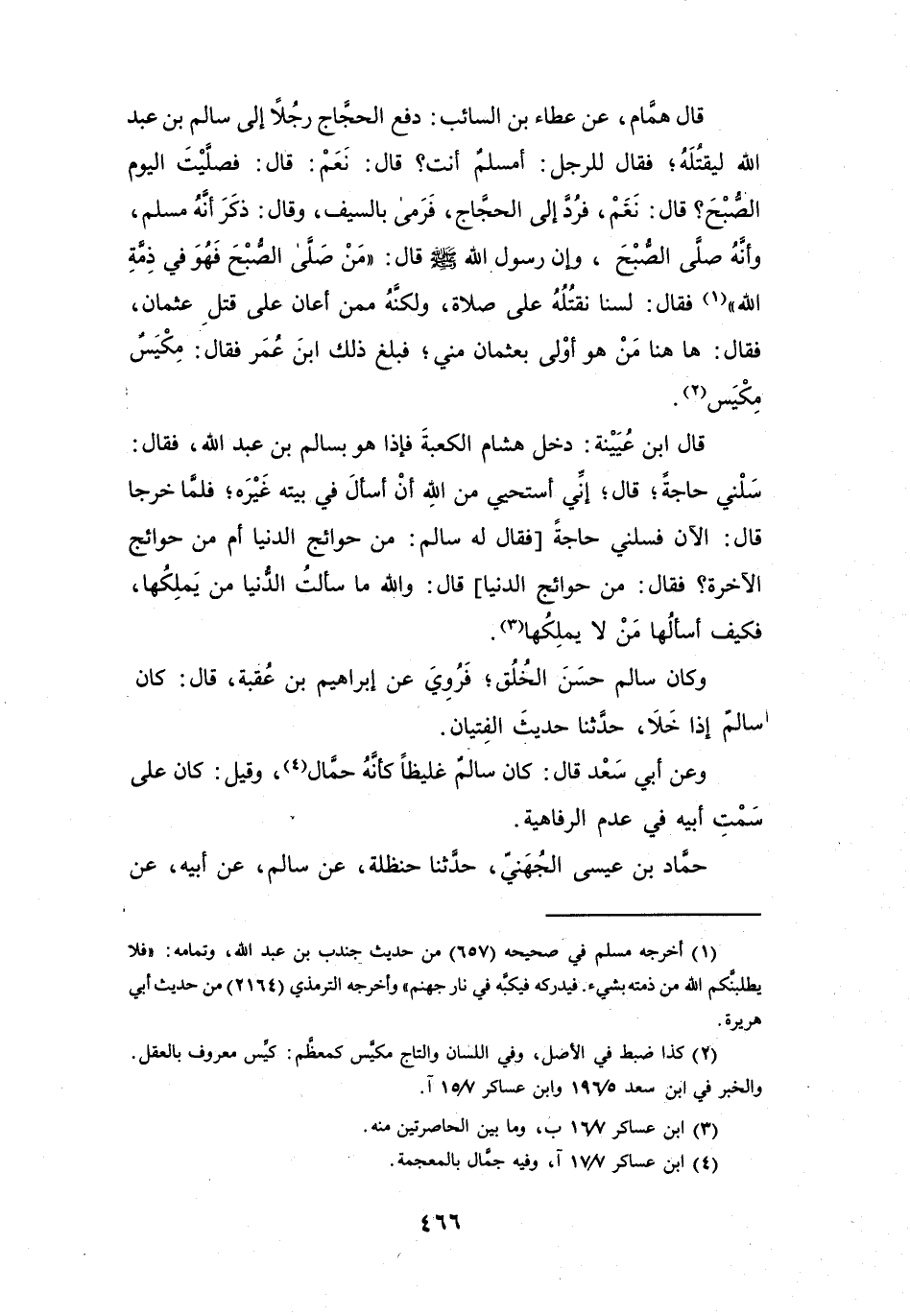 دَفَعَ الحَجَّاجُ رَجُلاً إِلَى سَالِمِ بنِ عَبْدِ اللهِ لِيَقْتُلَهُ، فَقَالَ لِلرَّجُلِ: أَمُسْلِمٌ أَنْتَ؟