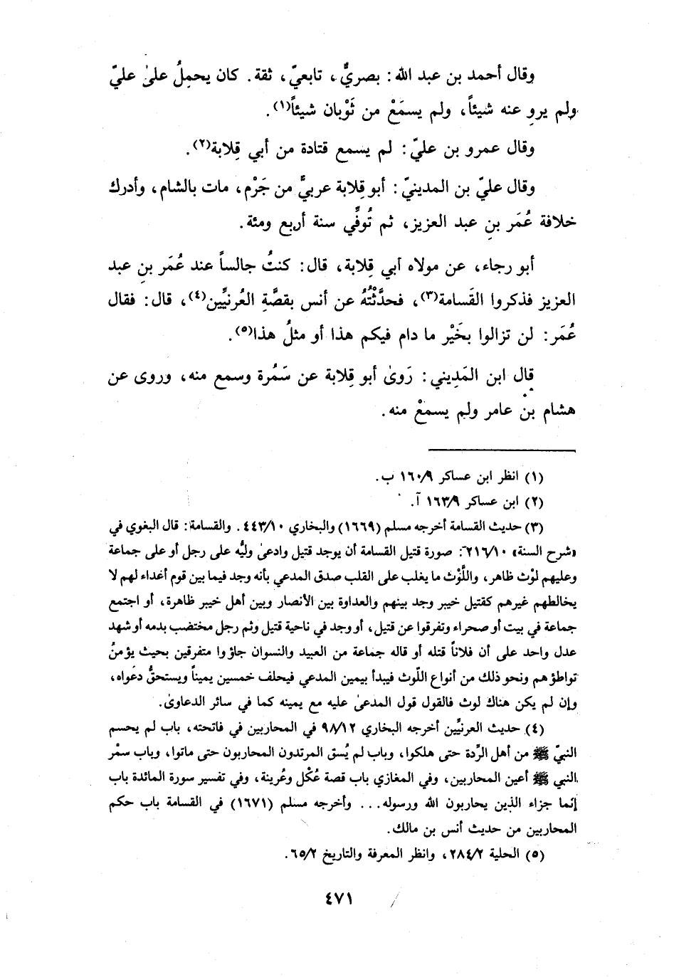 كُنْتُ جَالِساً عِنْدَ عُمَرَ بنِ عَبْدِ العَزِيْزِ، فَذَكَرُوا القَسَامَةَ (3) ، فَحَدَّثْتُهُ عَنْ أَنَسٍ بِقِصَّةِ العُرَنِيِّيْنَ (4) .