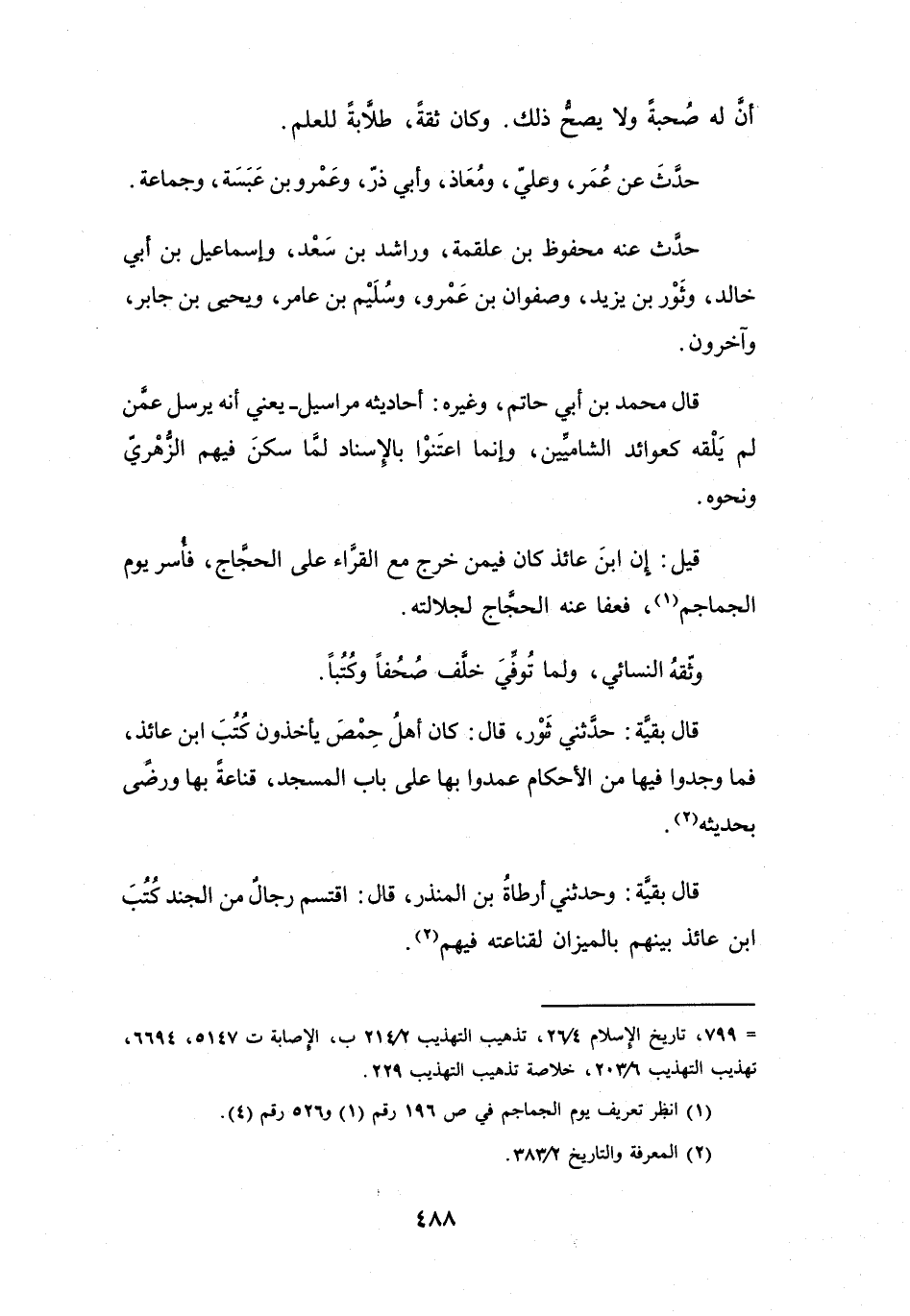 = 799، تاريخ الإسلام 4 / 26، تذهيب التهذيب 2 / 214 ب، الإصابة ت 5147، 6694، تهذيب التهذيب 6 / 203، خلاصة تذهيب التهذيب 229.