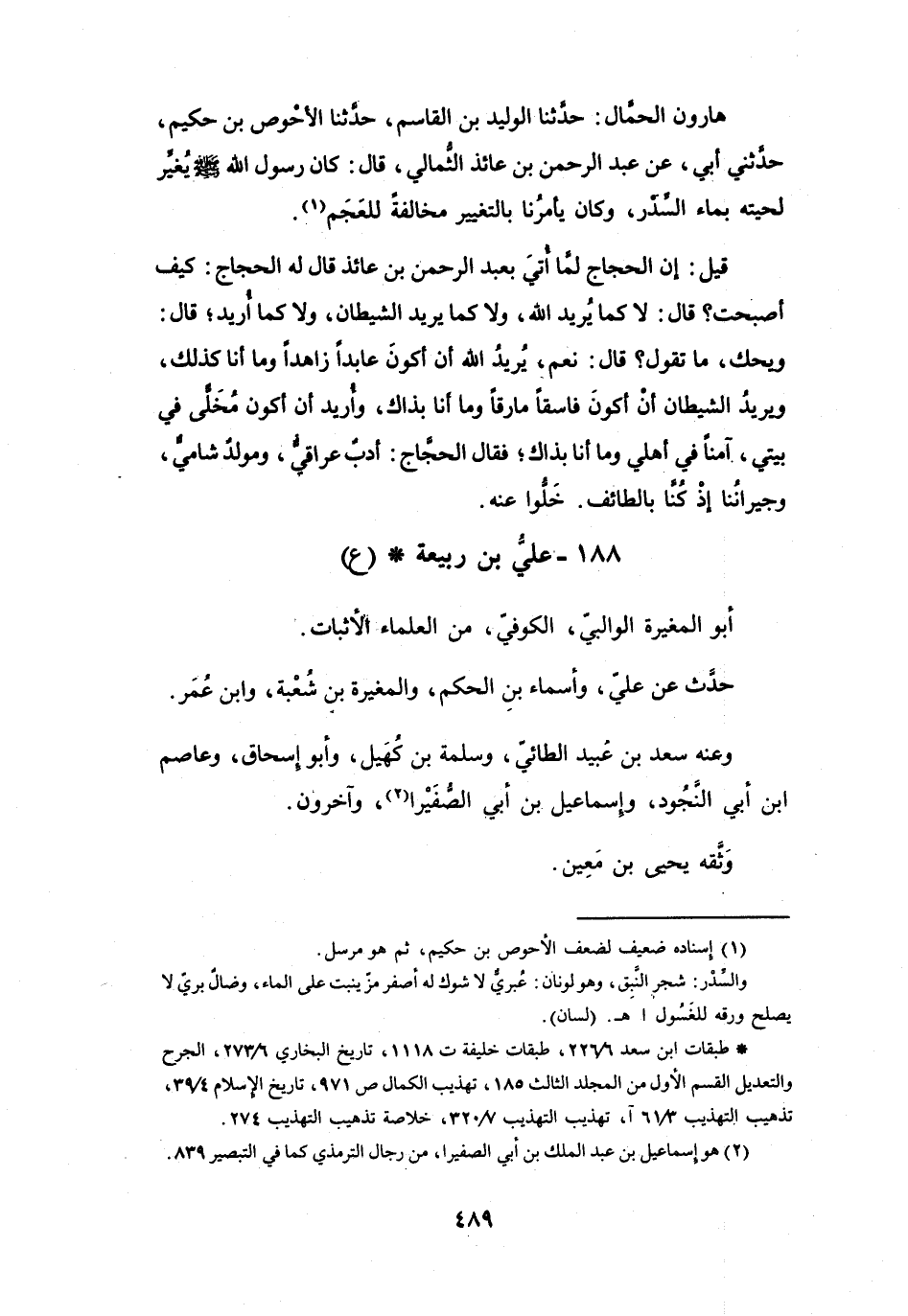 188 - عَلِيُّ بنُ رَبِيْعَةَ أَبُو المُغِيْرَةِ الوَالِبِيُّ الكُوْفِيُّ * (ع)
