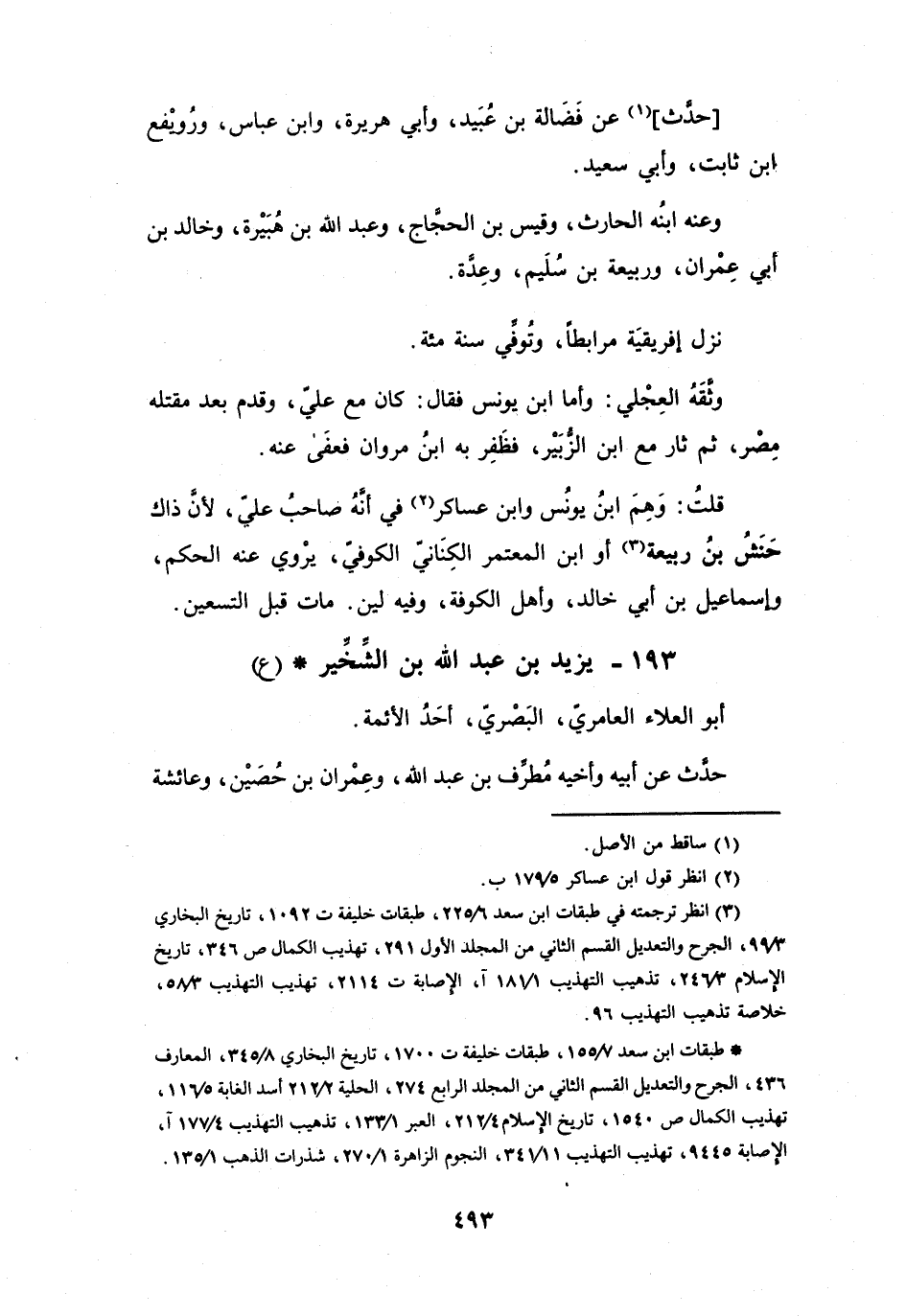 193 - يَزِيْدُ بنُ عَبْدِ اللهِ بنِ الشِّخِّيْرِ أَبُو العَلاَءِ العَامِرِيُّ * (ع)