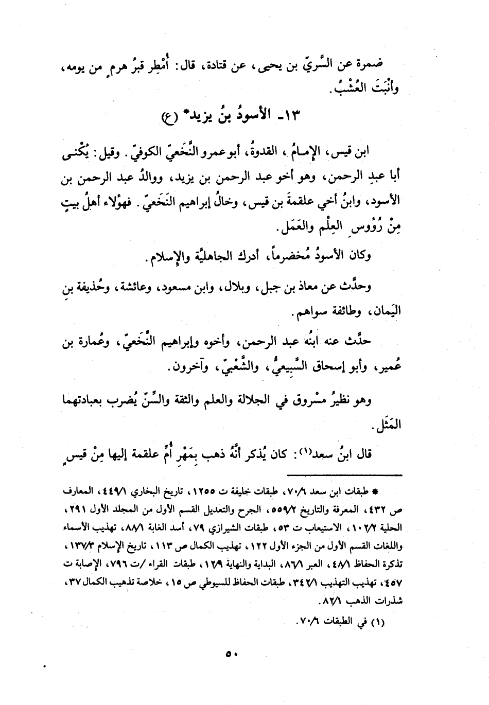 13 - الأَسْوَدُ بنُ يَزِيْدَ بنِ قَيْسٍ أَبُو عَمْرٍو النَّخَعِيُّ * (ع)