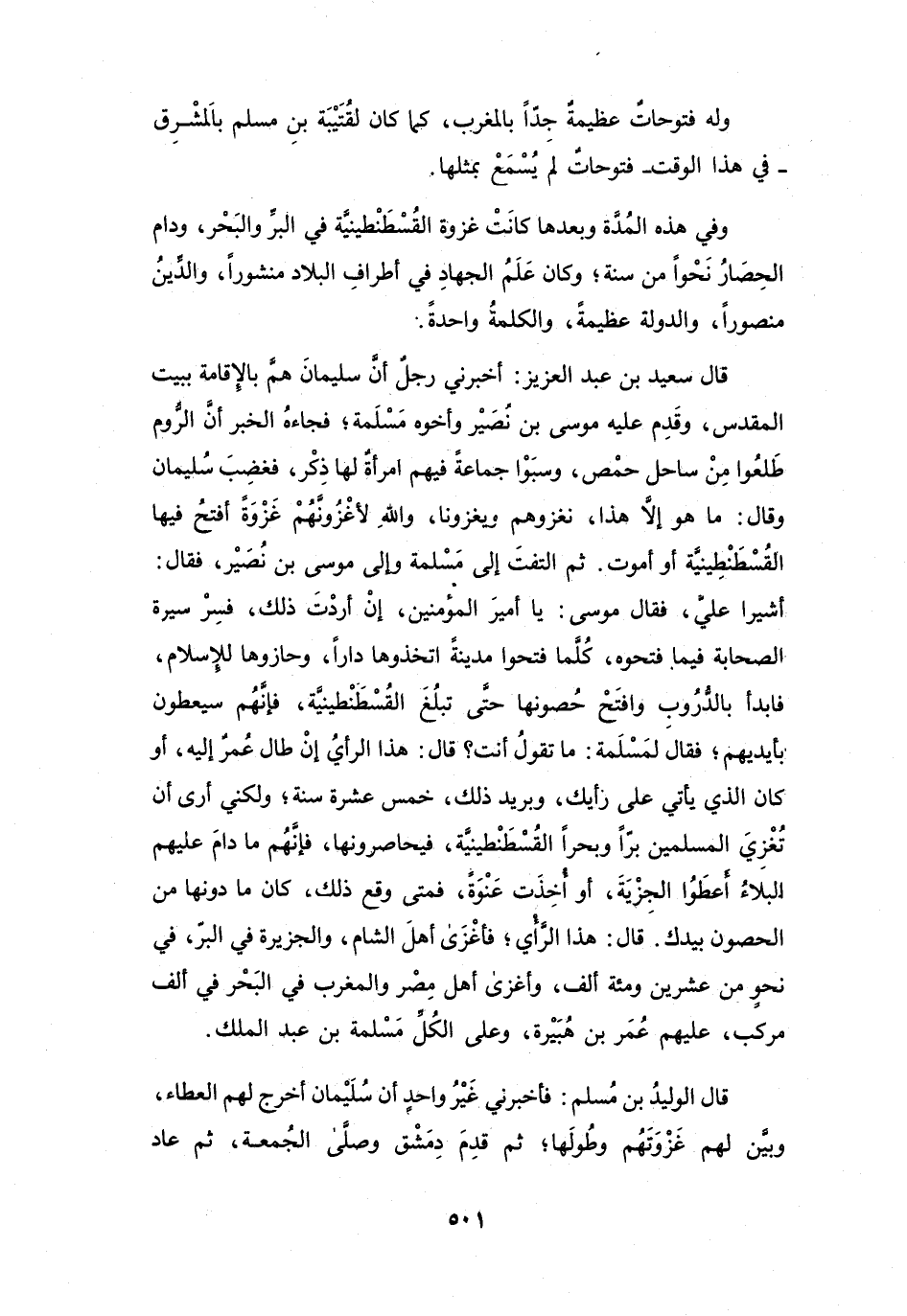 ثُمَّ الْتَفَتَ إِلَى مَسْلَمَةَ وَإِلَى مُوْسَى بنِ نُصَيْرٍ، فَقَالَ: أَشِيْرَا عَلَيْهِ.