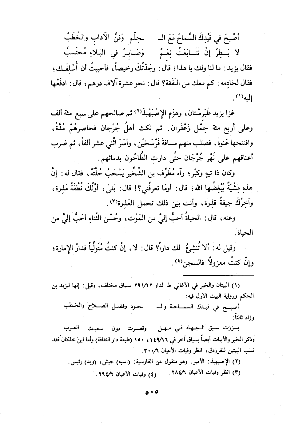 (1) البيتان والخبر في الاغاني ط الدار 12 / 291 بسياق مختلف، وقيل: إنها ليزيد بن الحكم ورواية البيت الأول فيه: أصبح في قيدك السماحة وال * جود وفضل الصلاح والخطب وزاد ثالثا: بززت سبق الجهاد في مهل * وقصرت دون سعيك العرب وذكر الخبر والابيات أيضا بسياق آخر في 16 / 149، 150 (طبعة دار الثقافة) وأما ابن خلكان فقد نسب البيتين للفرزدق، انظر وفيات الأعيان 6 / 300.