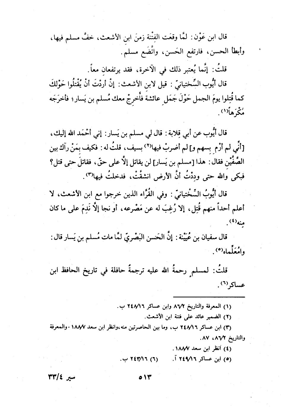 قُلْتُ: لِمُسْلِمٍ - رَحْمَةُ اللهِ عَلَيْهِ - تَرْجَمَةٌ حَافِلَةٌ فِي (تَارِيْخِ الحَافِظِ ابْنِ عَسَاكِرَ) (6) .