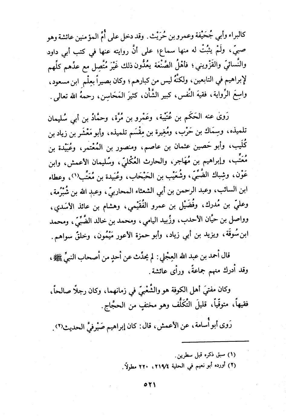 رَوَى: أَبُو أُسَامَةَ، عَنِ الأَعْمَشِ، قَالَ: كَانَ إِبْرَاهِيْمُ صَيْرَفِيَّ الحَدِيْثِ (2) .