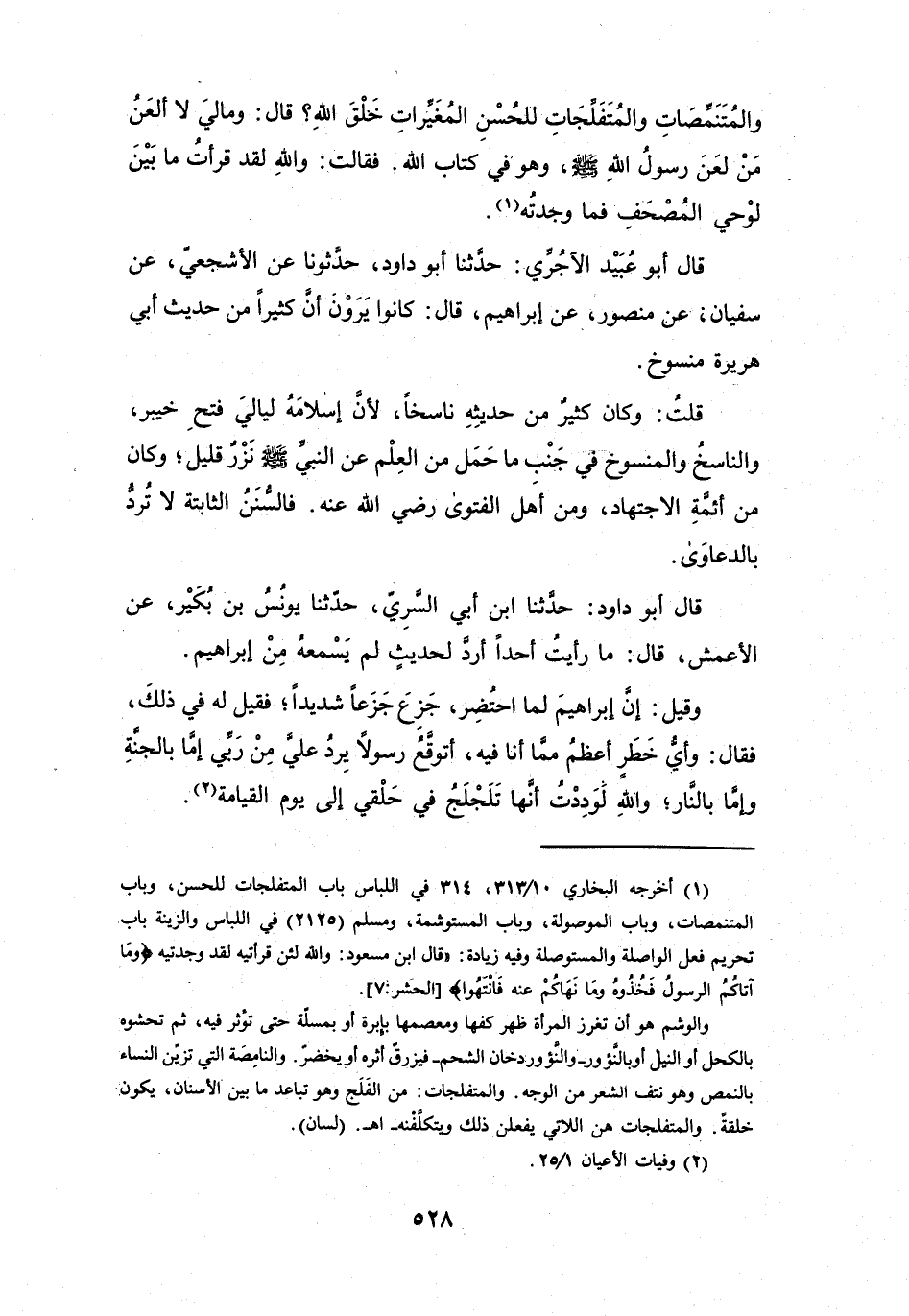 (1) أخرجه البخاري 10 / 313، 314 في اللباس باب المتفلجات للحسن، وباب المتنمصات، وباب الموصولة، وباب المستوشمة، ومسلم (2125) في اللباس والزينة باب تحريم فعل الواصلة والمستوصلة وفيه زيادة: " قال ابن مسعود: والله لئن قرأتيه لقد وجدتيه (وما آتاكم الرسول فخذوه وما نهاكم عنه فانتهوا) [الحشر: 7] .