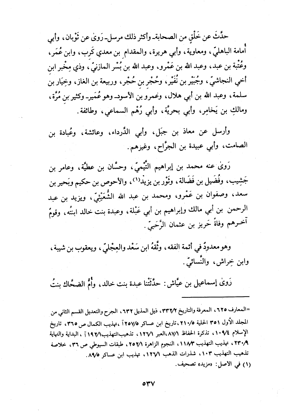 = المعارف 625، المعرفة والتاريخ 2 / 332، ذيل المذيل 632، الجرح والتعديل القسم الثاني من المجلد الأول 351 الحلية 5 / 210، تاريخ ابن عساكر 5 / 257 آ، تهذيب الكمال ص 365، تاريخ الإسلام 4 / 109، تذكرة الحفاظ 1 / 87، العبر 1 / 126، تذهيب التهذيب 1 / 192 آ، البداية والنهاية 9 / 230، تهذيب التهذيب 3 / 118، النجوم الزاهرة 1 / 252، طبقات السيوطي ص 36، خلاصة تذهيب التهذيب 103، شذرات الذهب 1 / 126، تهذيب ابن عساكر 5 / 89.