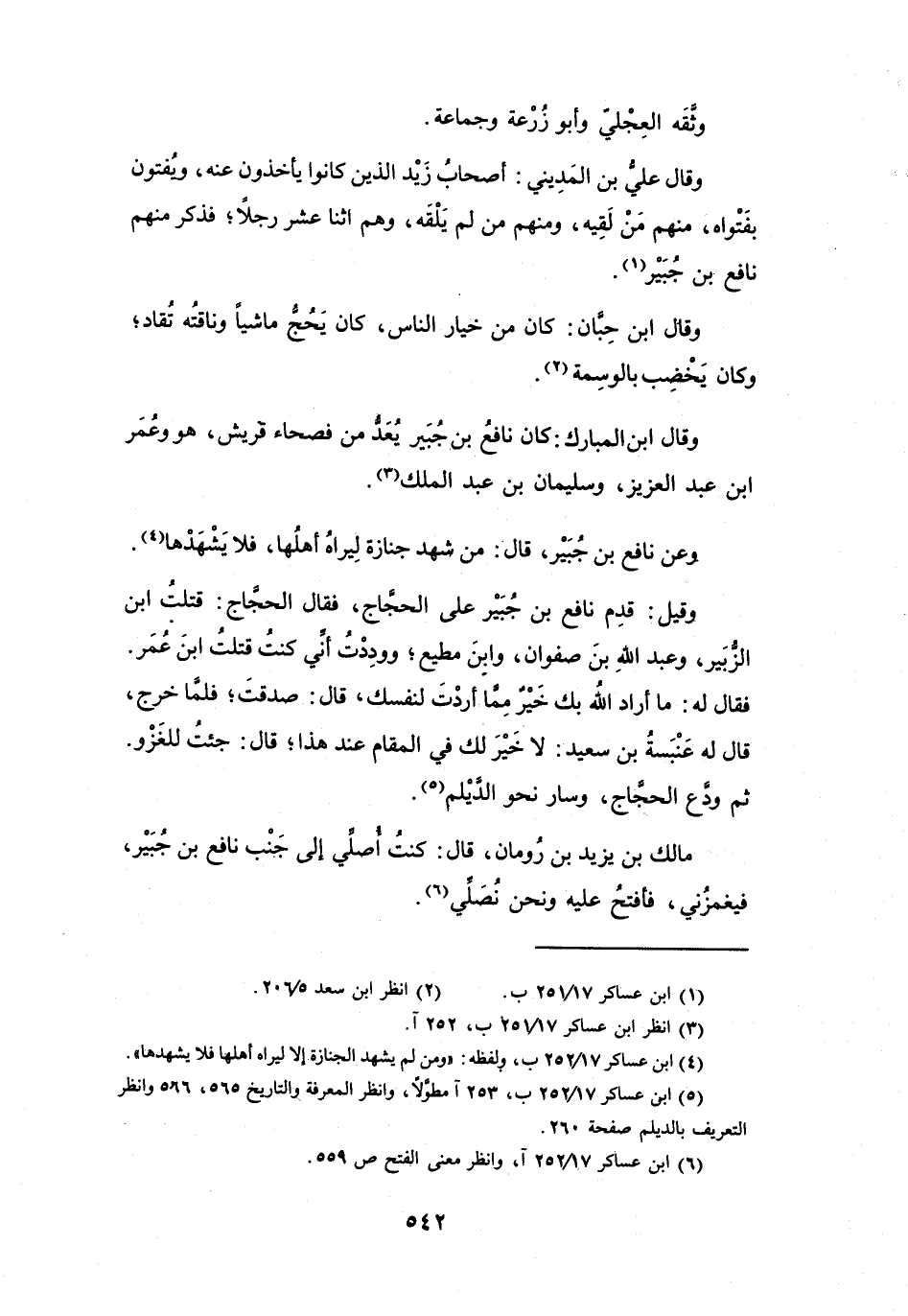 وَقَالَ ابْنُ المُبَارَكِ: كَانَ نَافِعُ بنُ جُبَيْرٍ يُعَدُّ مِنْ فُصَحَاءِ قُرَيْشٍ؛ هُوَ، وَعُمَرُ بنُ عَبْدِ العَزِيْزِ، وَسُلَيْمَانُ بنُ عَبْدِ المَلِكِ (3) .
