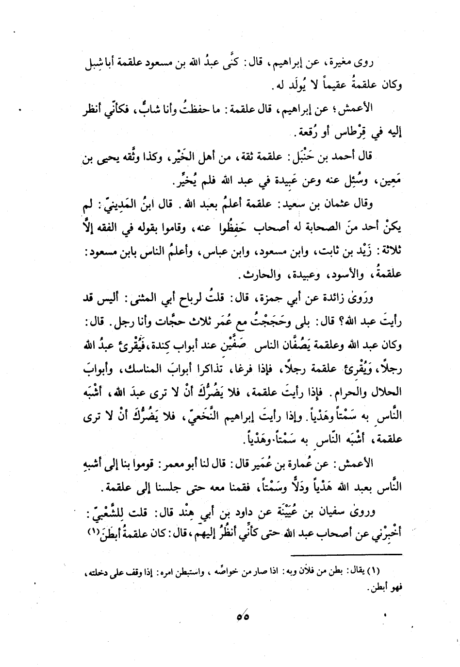 الأَعْمَشُ: عَنْ إِبْرَاهِيْمَ، قَالَ عَلْقَمَةُ: