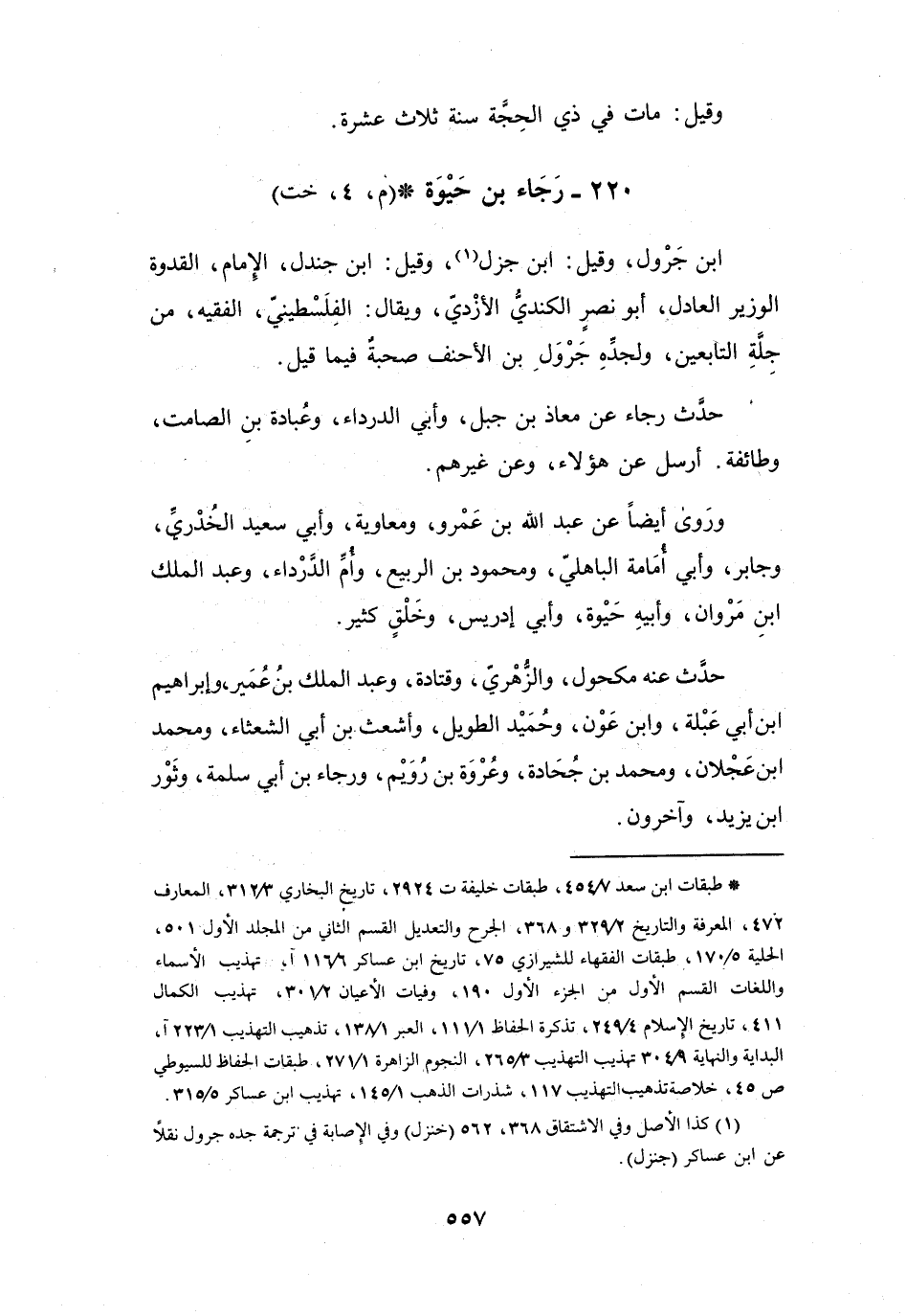 (*) طبقات ابن سعد 7 / 454، طبقات خليفة ت 2924، تاريخ البخاري 3 / 312، المعارف 472، المعرفة والتاريخ 2 / 329 و368، الجرح والتعديل القسم الثاني من المجلد الأول 501، الحلية 5 / 170، طبقات الفقهاء للشيرازي 75، تاريخ ابن عساكر 6 / 116 آ، تهذيب الأسماء