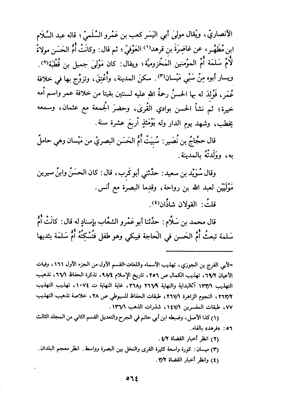 ثُمَّ قَالَ: وَكَانَتْ أُمُّ الحَسَنِ مَوْلاَةً لأُمِّ سَلَمَةَ أُمِّ المُؤْمِنِيْنَ المَخْزُوْمِيَّةِ.