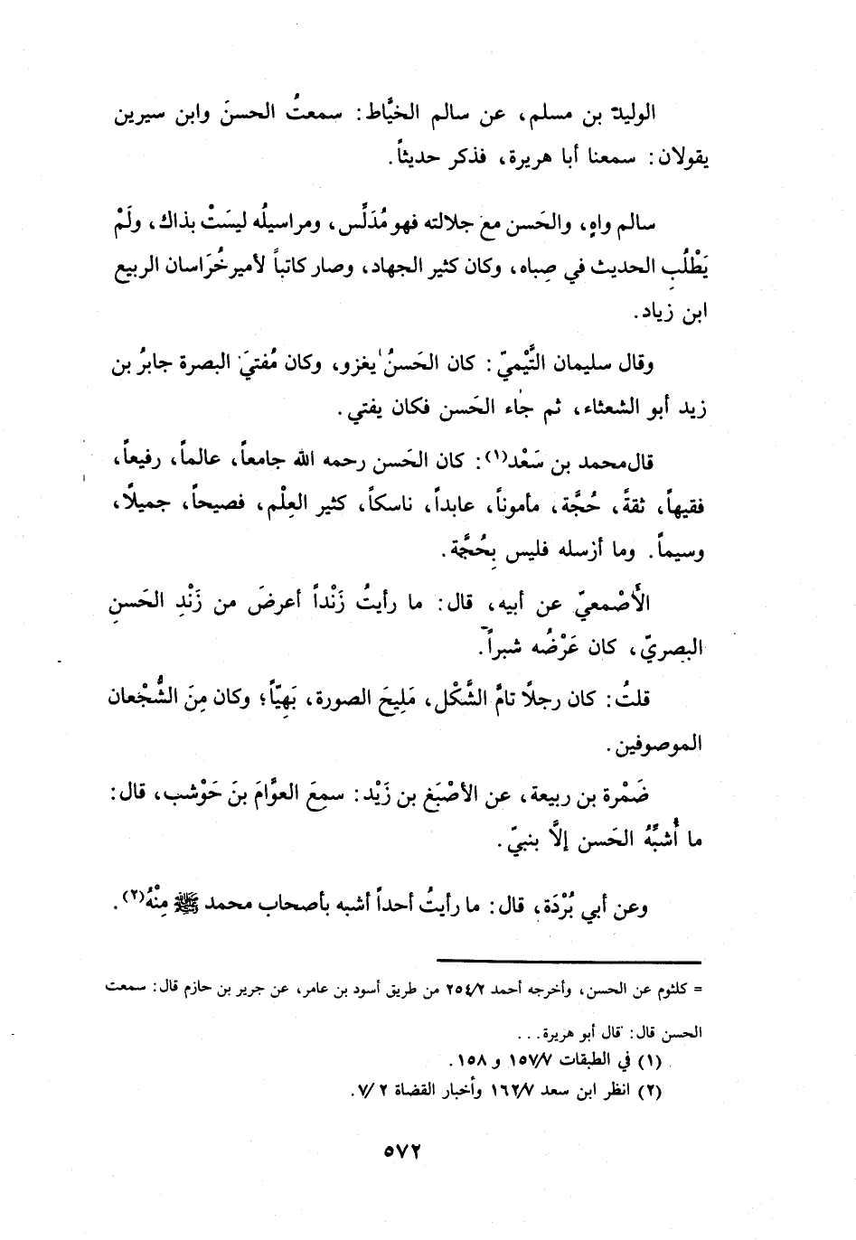 قَالَ مُحَمَّدُ بنُ سَعْدٍ (1) : كَانَ الحَسَنُ -رَحِمَهُ اللهُ- جَامِعاً، عَالِماً، رَفِيْعاً، فَقِيْهاً، ثِقَةً، حُجَّةً، مَأْمُوْناً، عَابِداً، نَاسِكاً، كَثِيْرَ العِلْمِ، فَصِيْحاً، جَمِيْلاً، وَسِيْماً، وَمَا أَرْسَلَهُ فَلَيْسَ بِحُجَّةٍ.