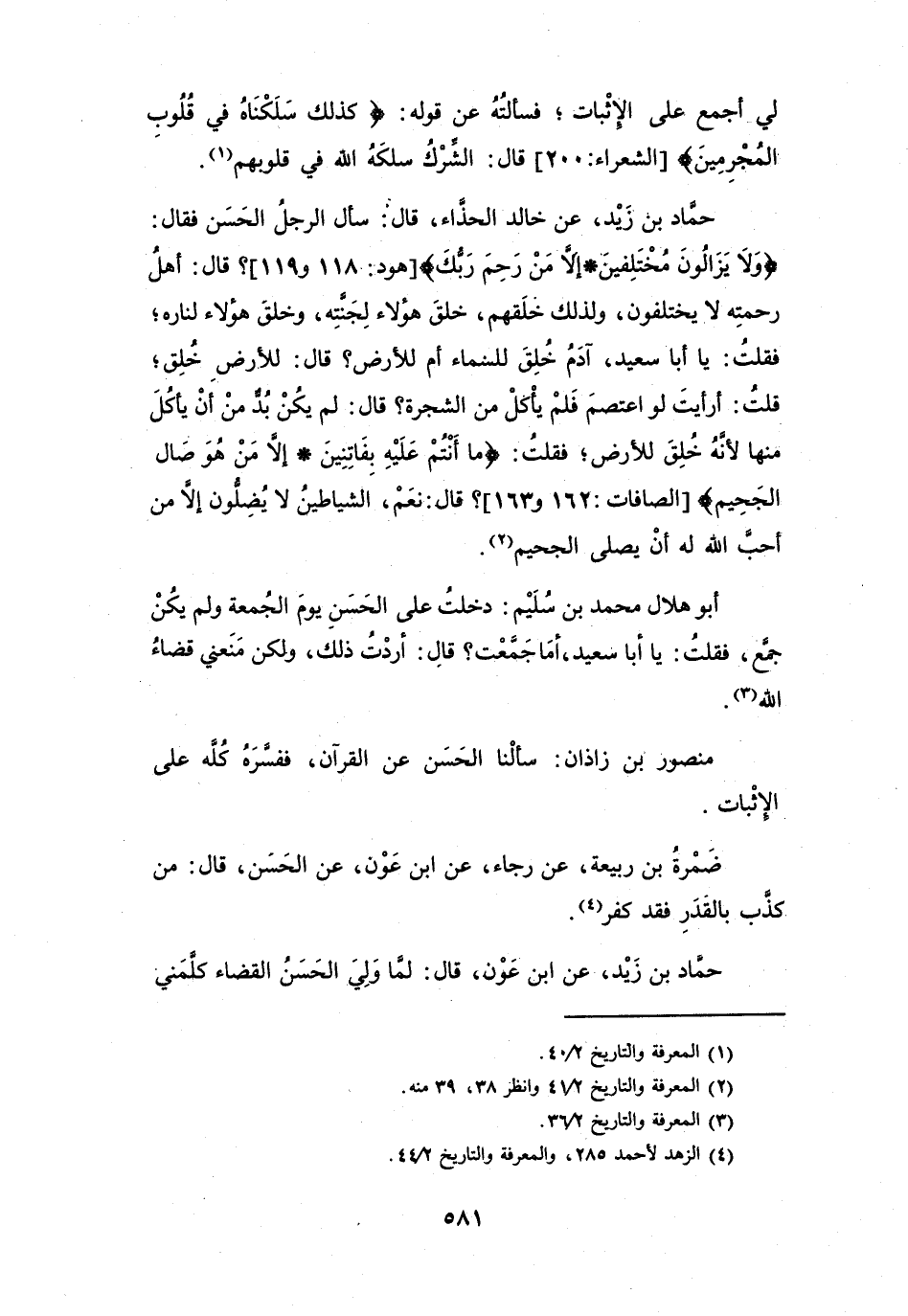 (4) الزهد لأحمد 285، والمعرفة والتاريخ 2 / 44.