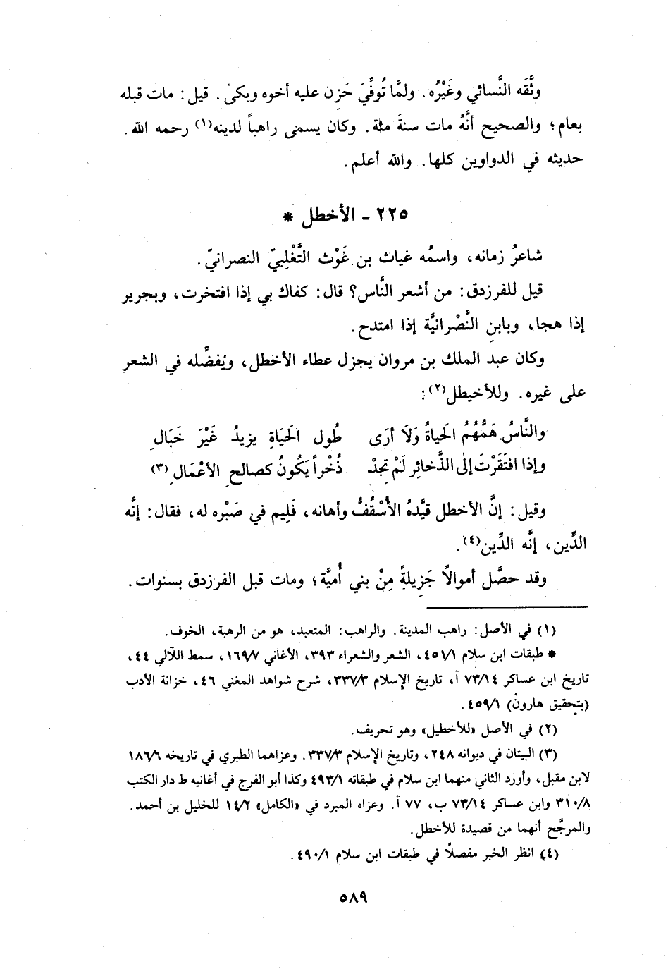 225 - الأَخْطَلُ غِيَاثُ بنُ غَوْثٍ التَّغْلِبِيُّ النَّصْرَانِيُّ *