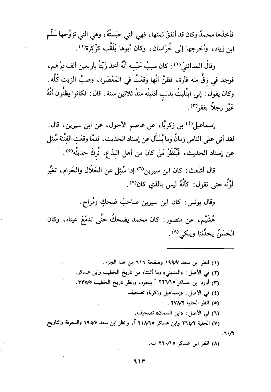 قَالَ أَشْعَثُ: كَانَ ابْنُ سِيْرِيْنَ (6) إِذَا سُئِلَ عَنِ الحَلاَلِ وَالحَرَامِ، تَغَيَّرَ لَوْنُهُ حَتَّى تَقُوْلَ: كَأَنَّهُ لَيْسَ بِالَّذِي كَانَ (7) .